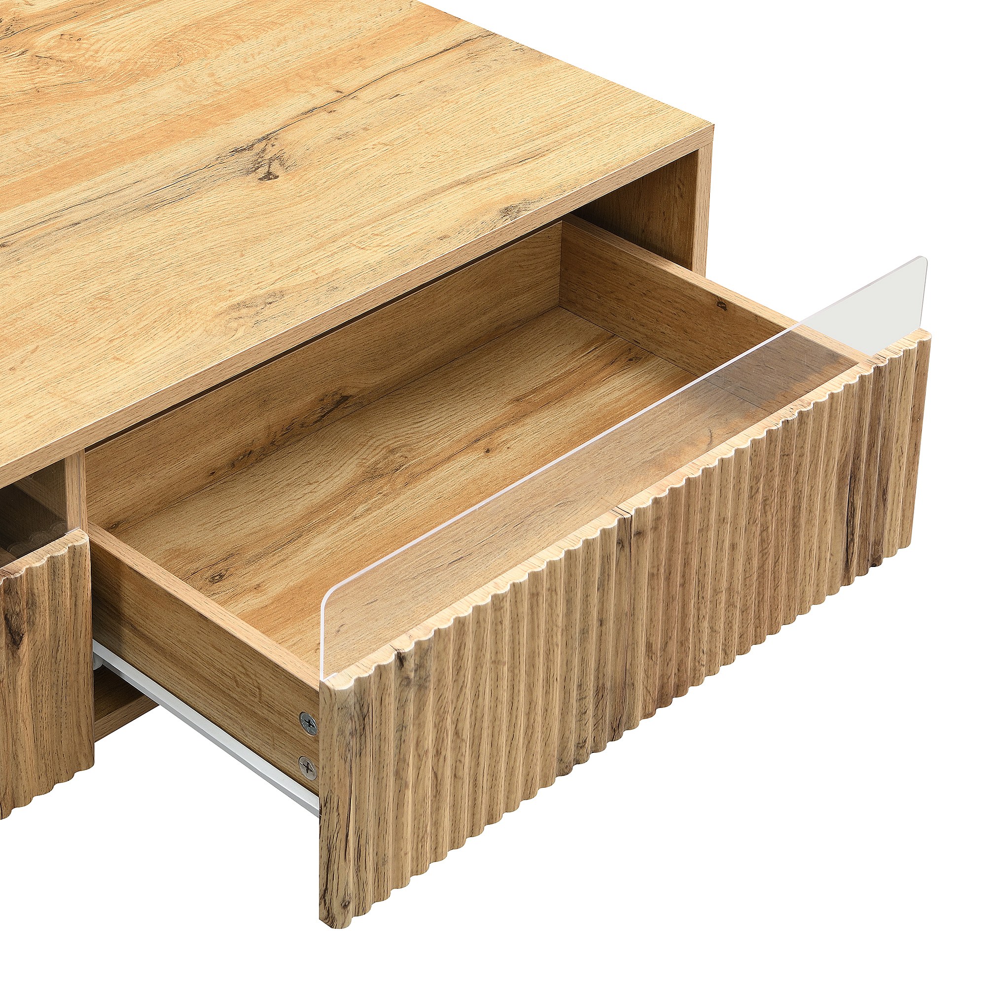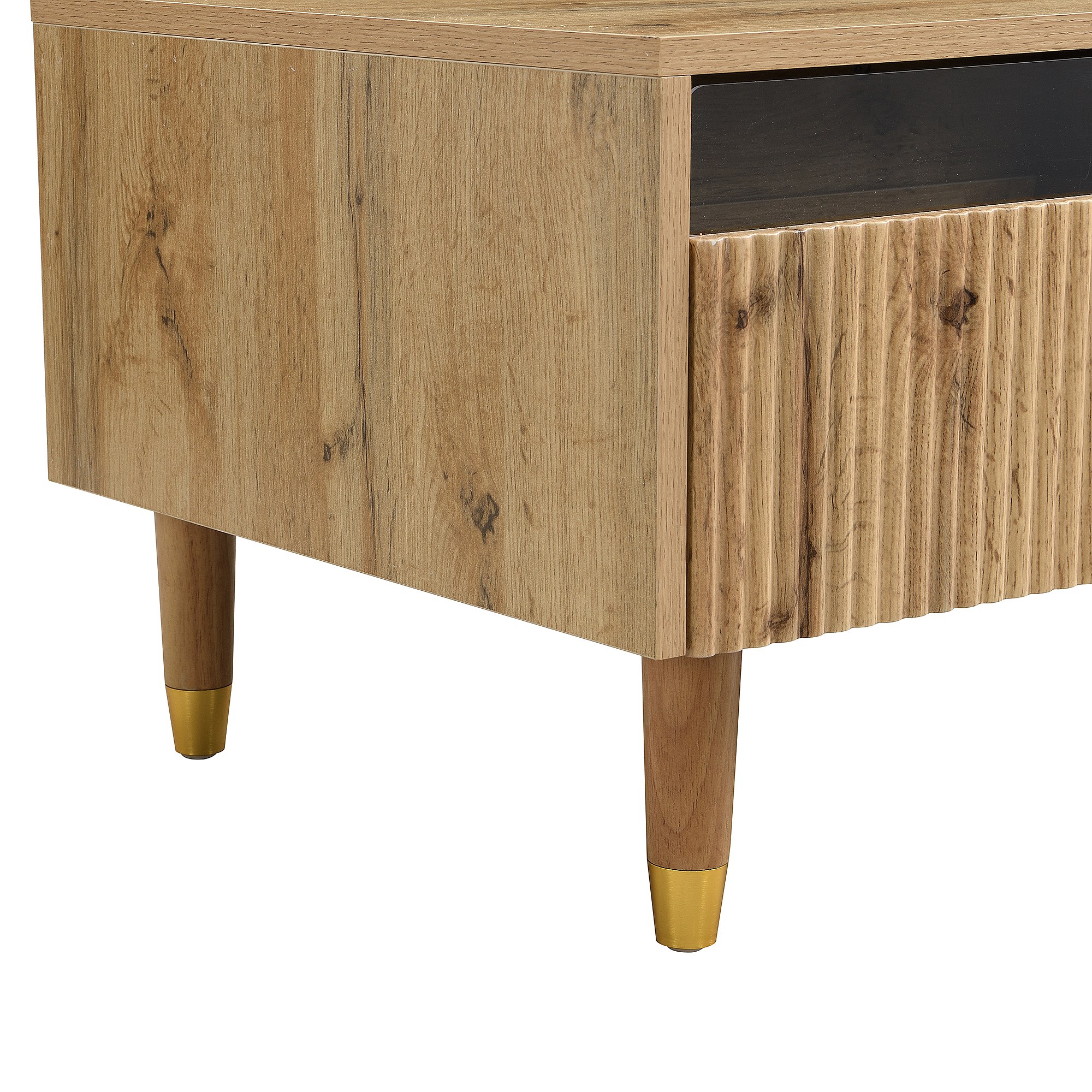 Mesa de centro cor madeira com LED, 2 gavetas, dourado e pés em madeira 110x50x40cm