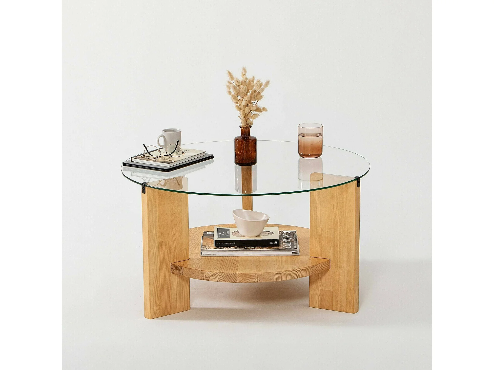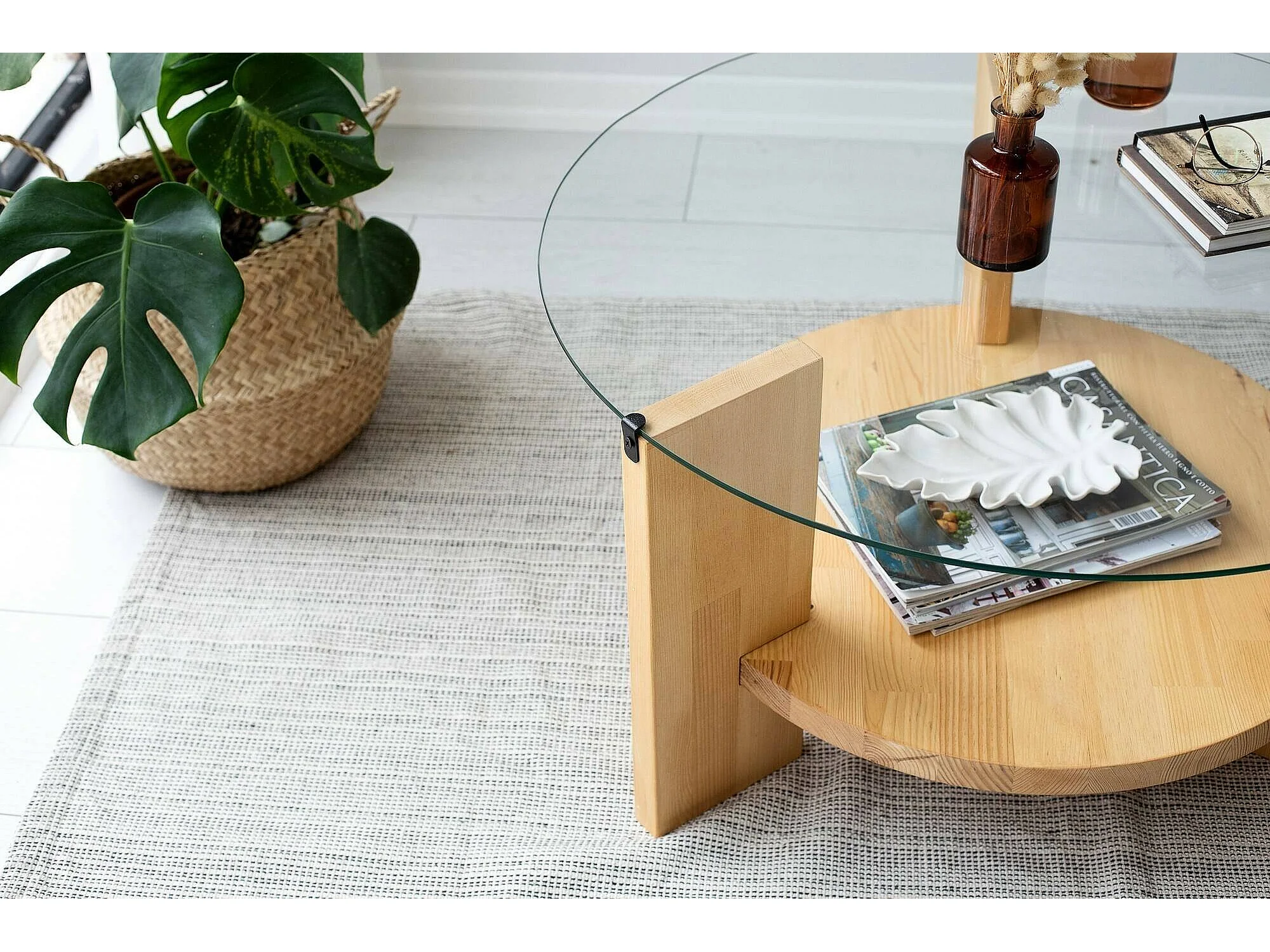 Mesa de centro Dcaporal,Mesa baixa para café, Porta-revistas para sofá, Prateleira para sala de estar, 75x75h40 cm, Carvalho