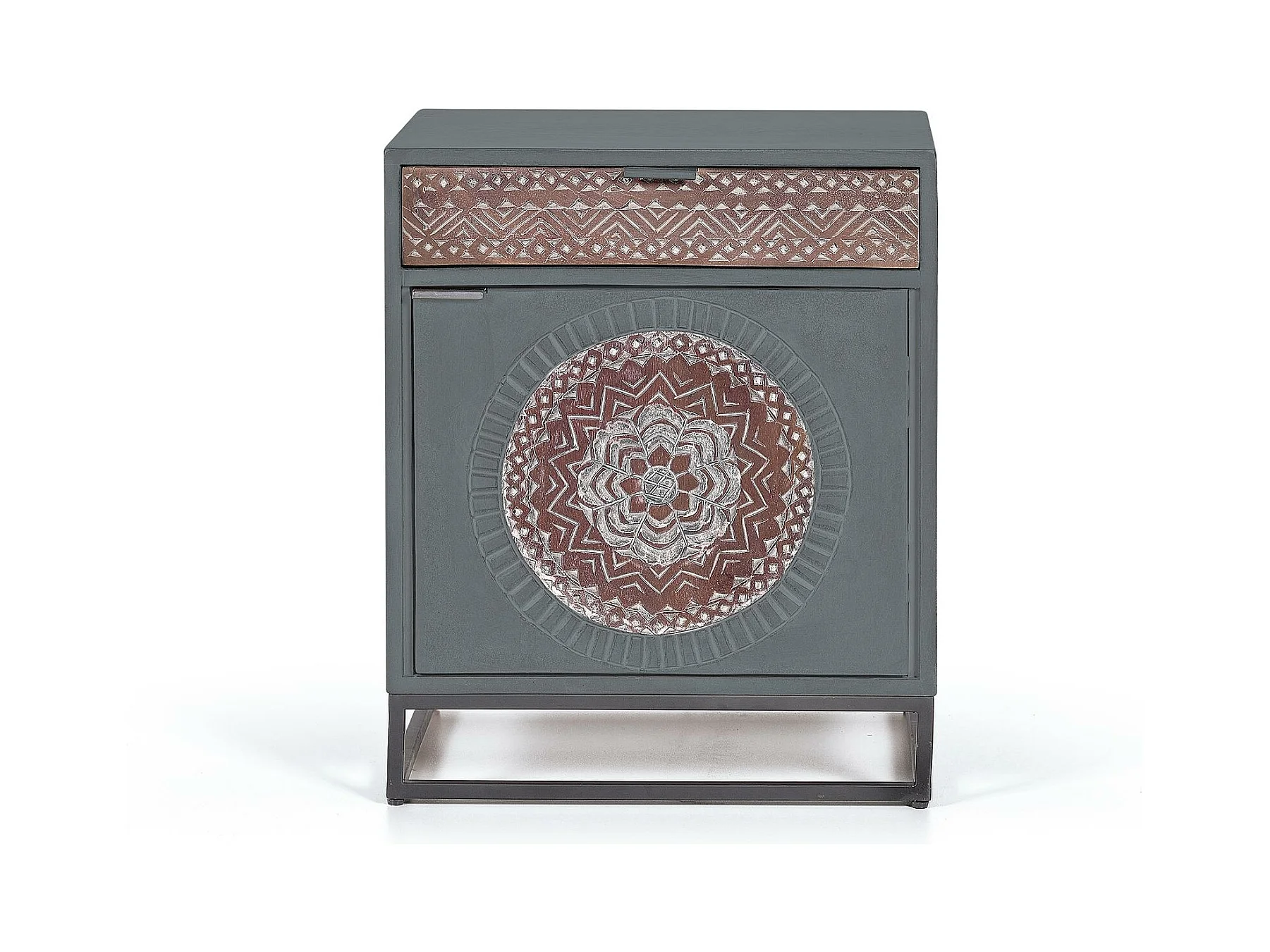 Mesa cabeceira esculpida à mão 40x30x50 cm madeira recuperada