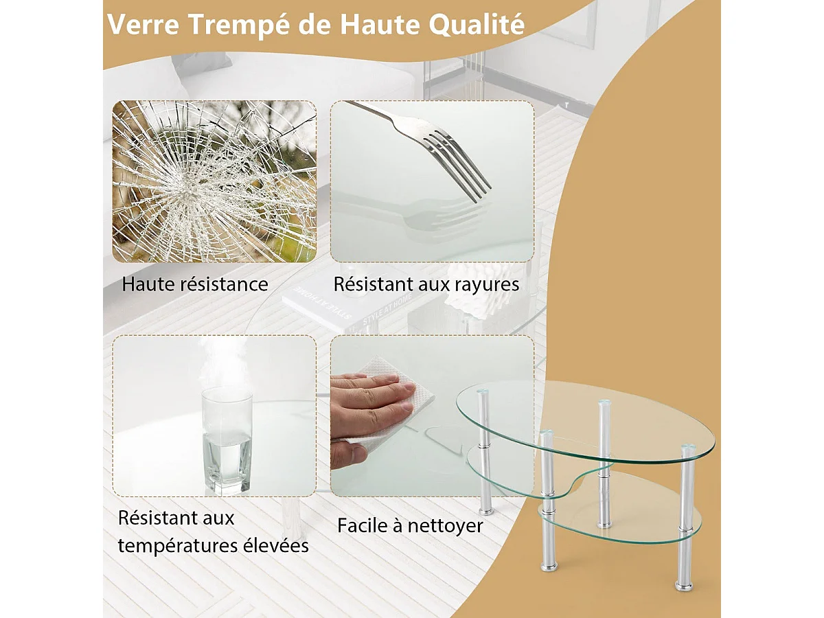 Mesa de centro retangular de vidro temperado 108 x 50 x 35 cm mesa de sala de estar em formato de U com bordas arredondadas lisas carga 30 kg 20_0005982