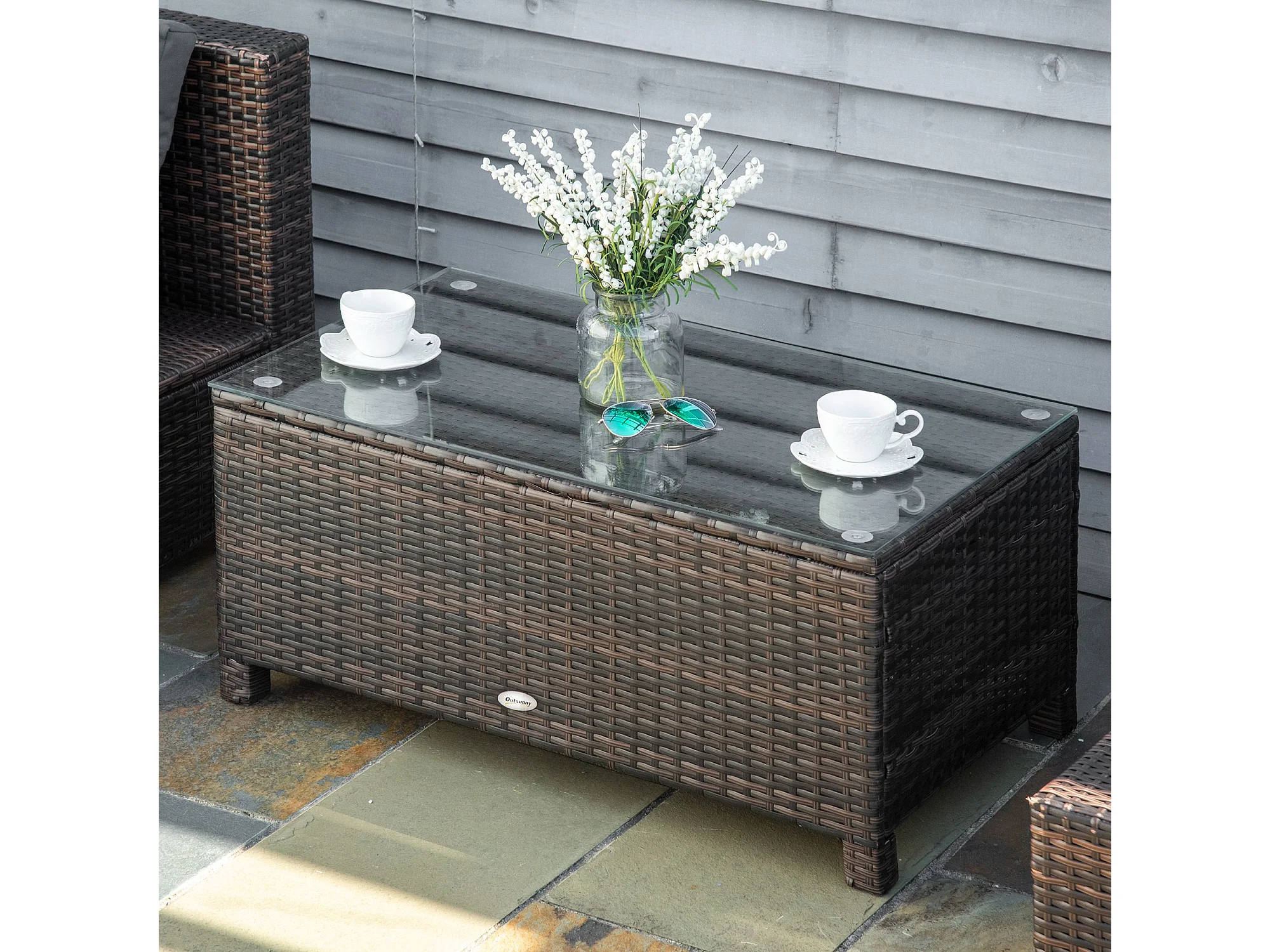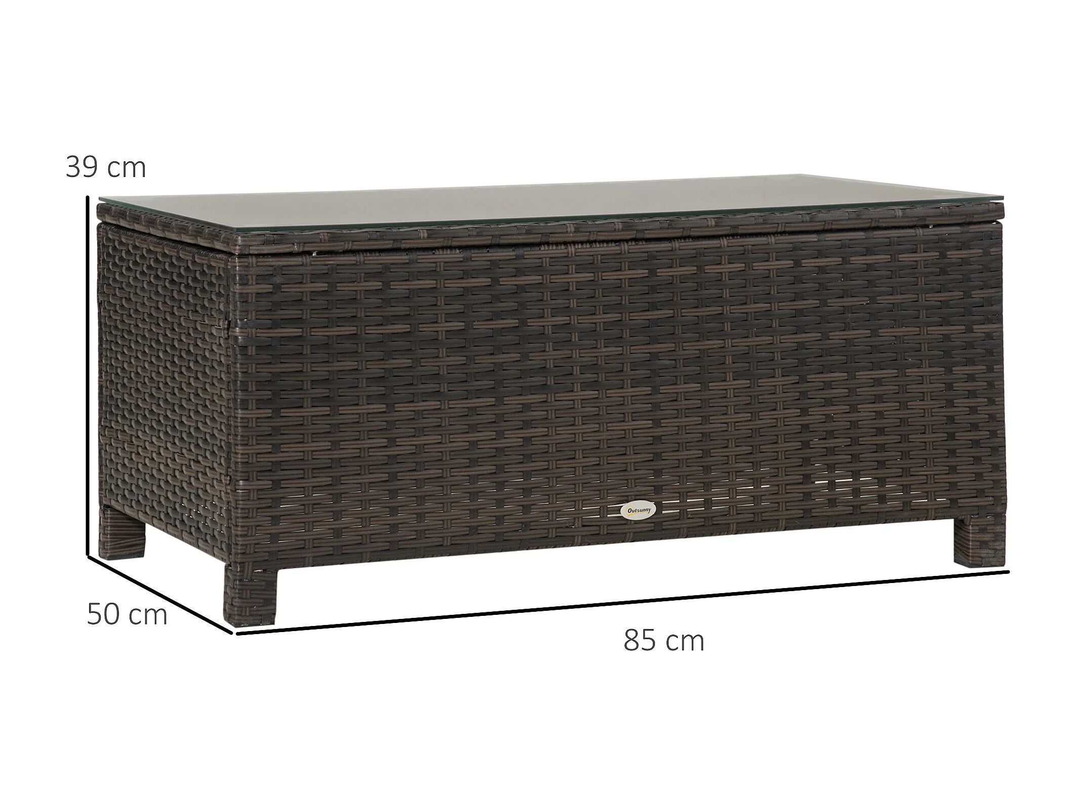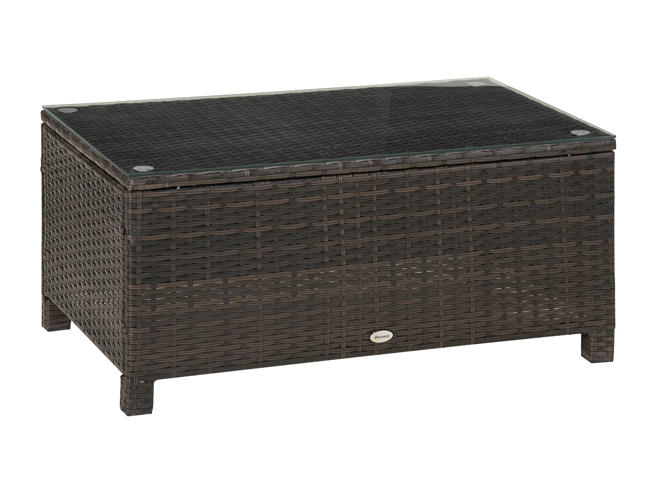 Mesa de Centro de Vime Sintético com Vidro Temperado para Jardim e Varanda - 85x50x39 cm Marrom