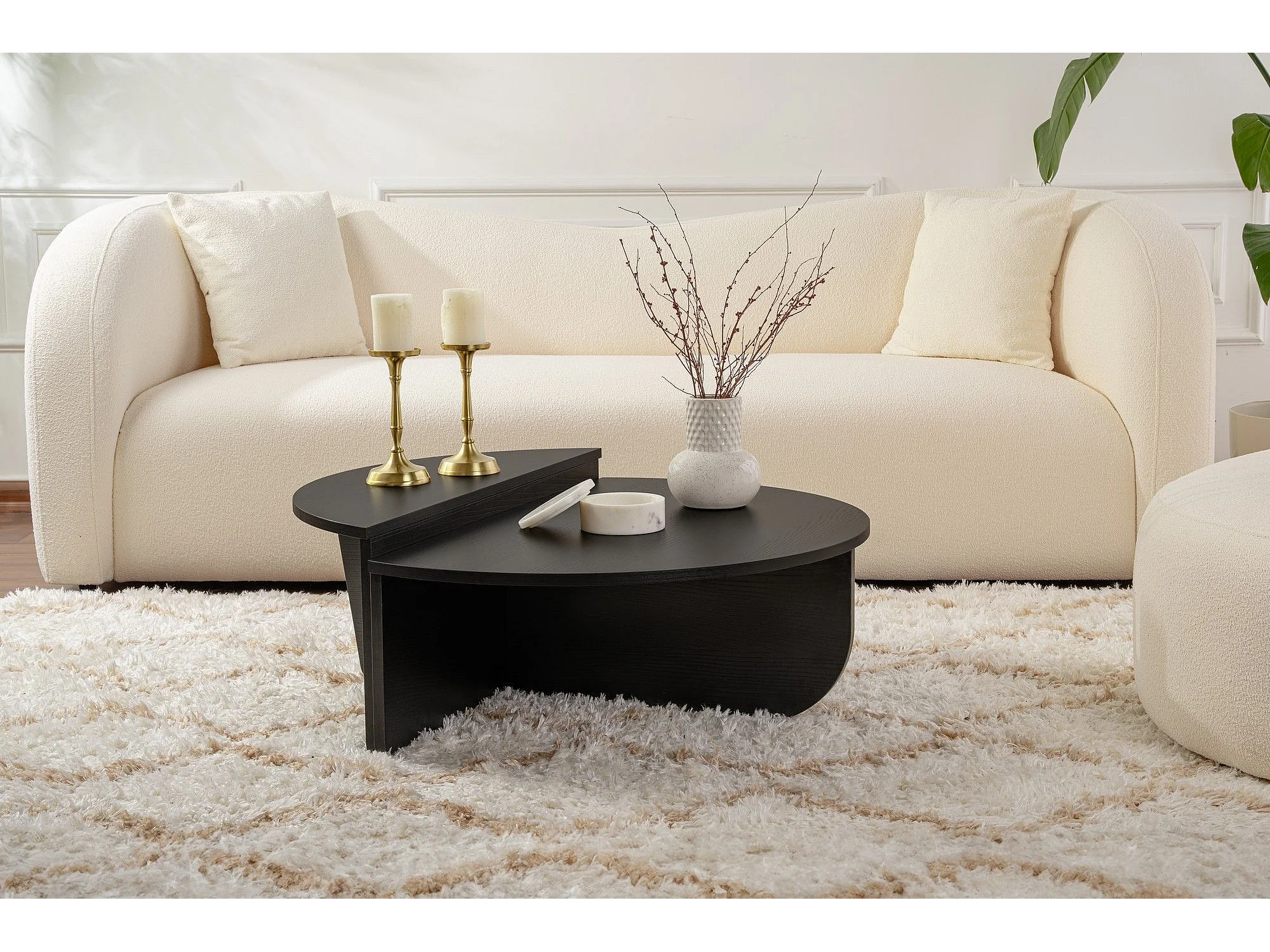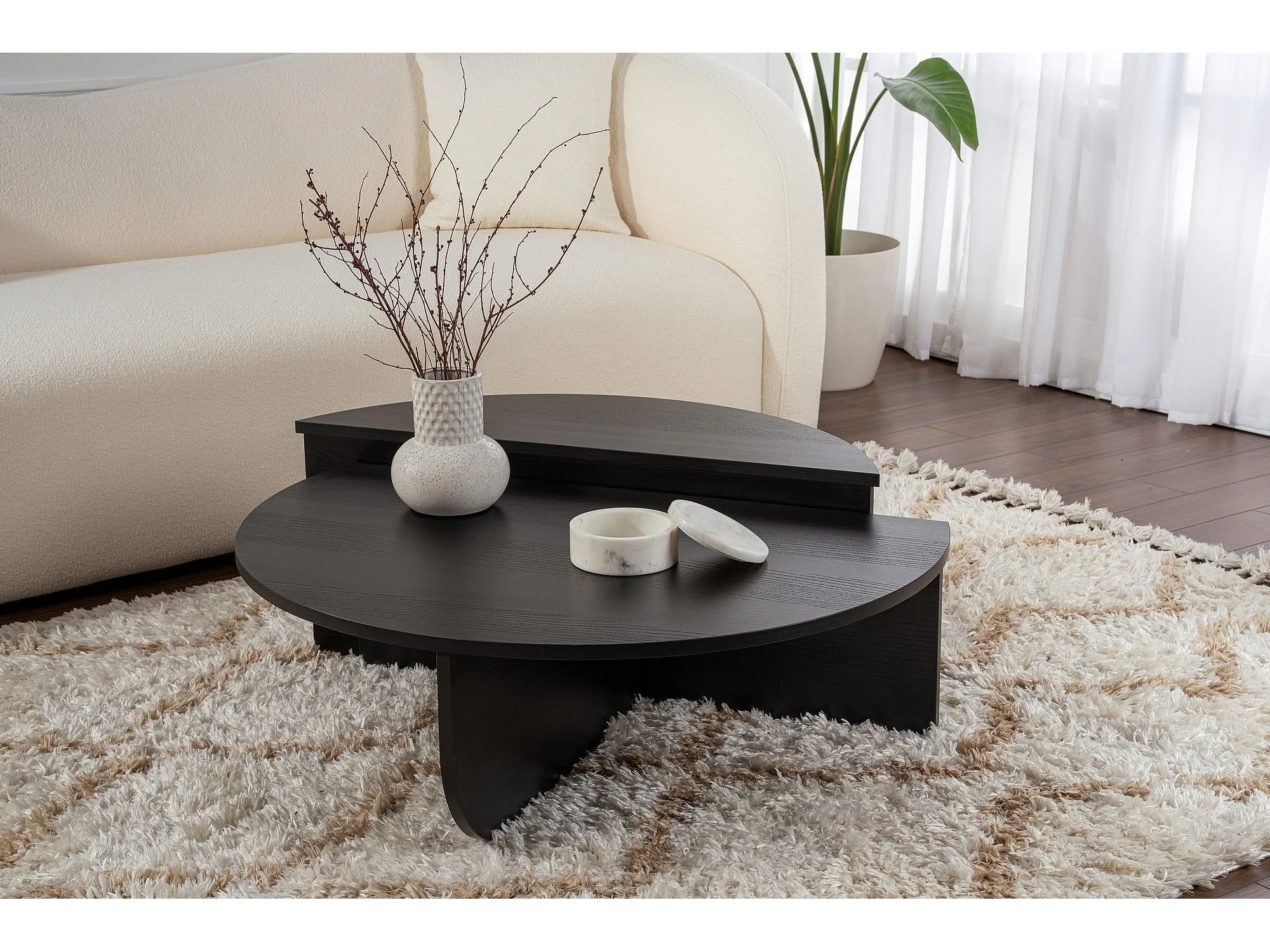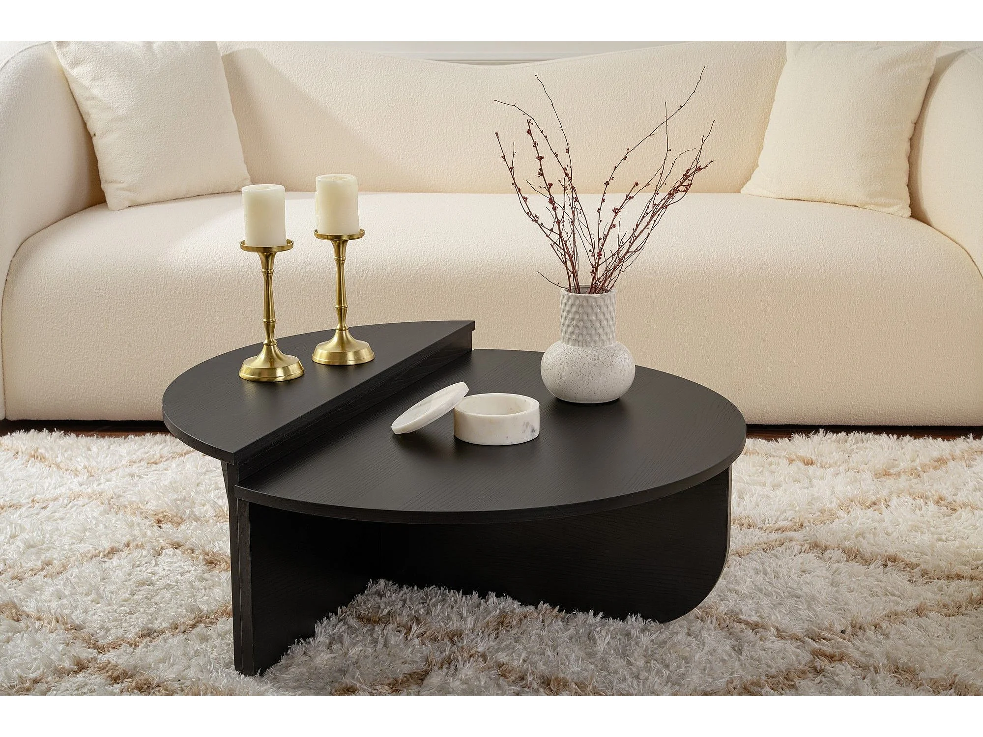 Mesa de centro design Restine em madeira preta de 90cm de diâmetro