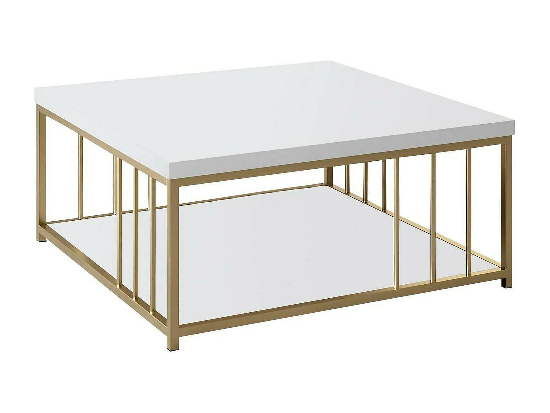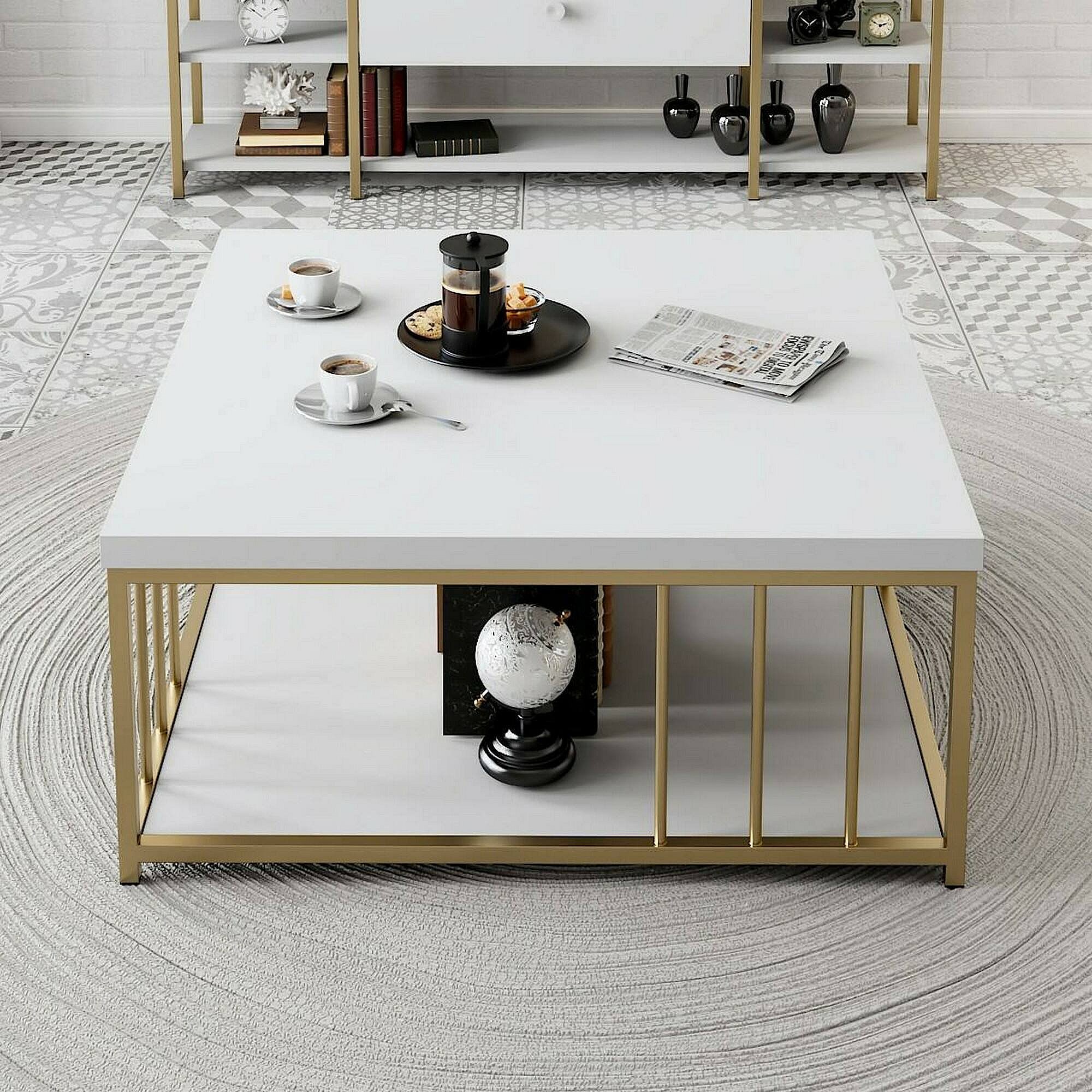 Mesa de centro DFedrizz, Mesa de café, Porta-revistas para sofá, Prateleira para sala de estar, 90x39h40 cm, Branco e Dourado