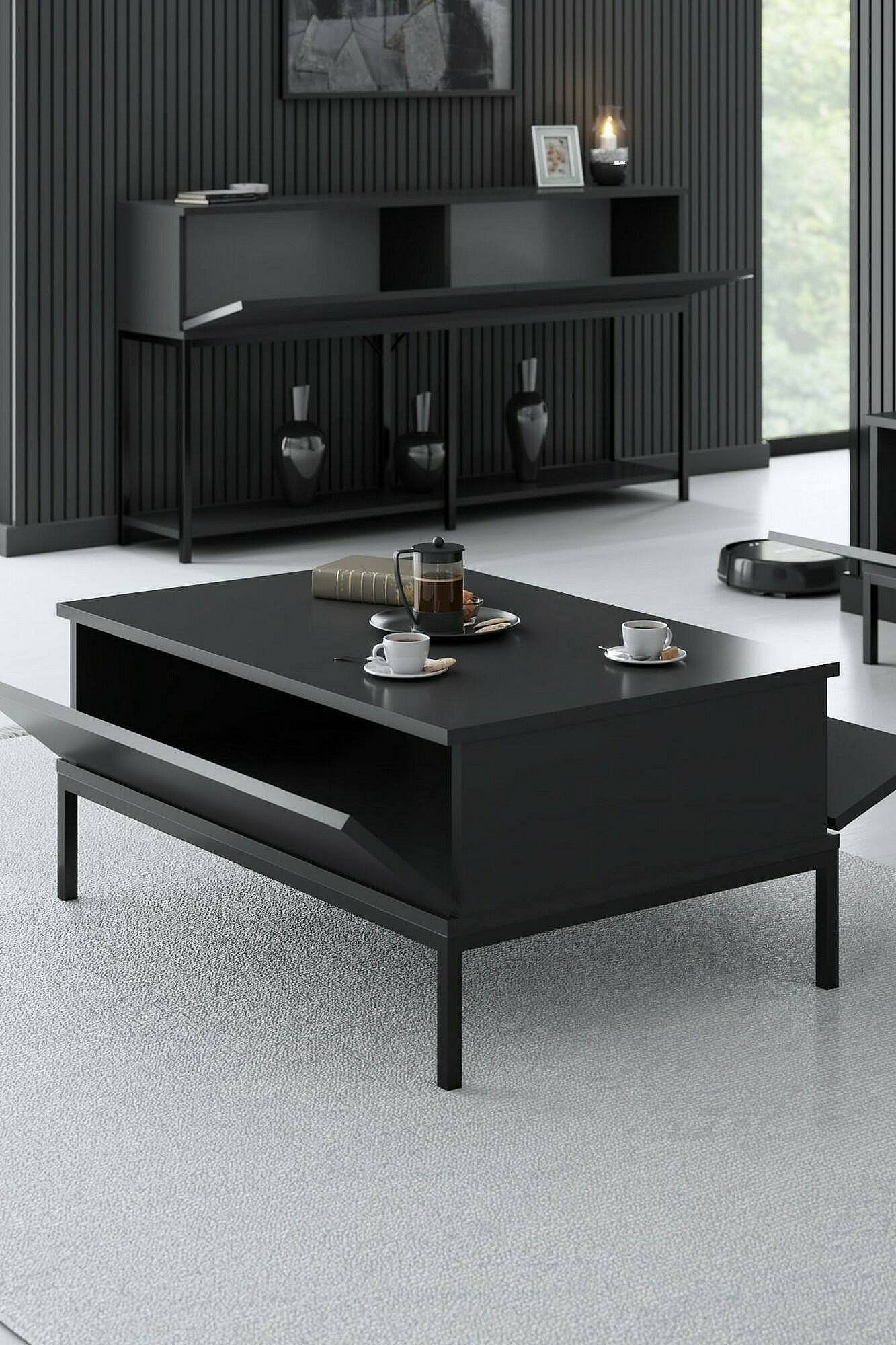 Mesa de centro Dfiamozz, Mesa de café, Suporte de revistas para sofá, Prateleira para sala de estar, 90x60h40 cm, Antracite e Preto