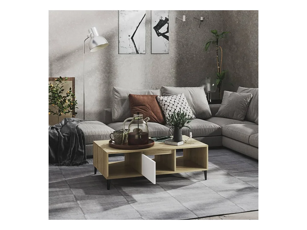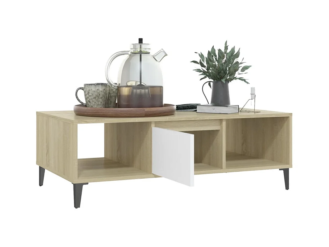 Mesa de centro dourada Branco e carvalho sonoma 103,5x60x35 cm Aglomerado