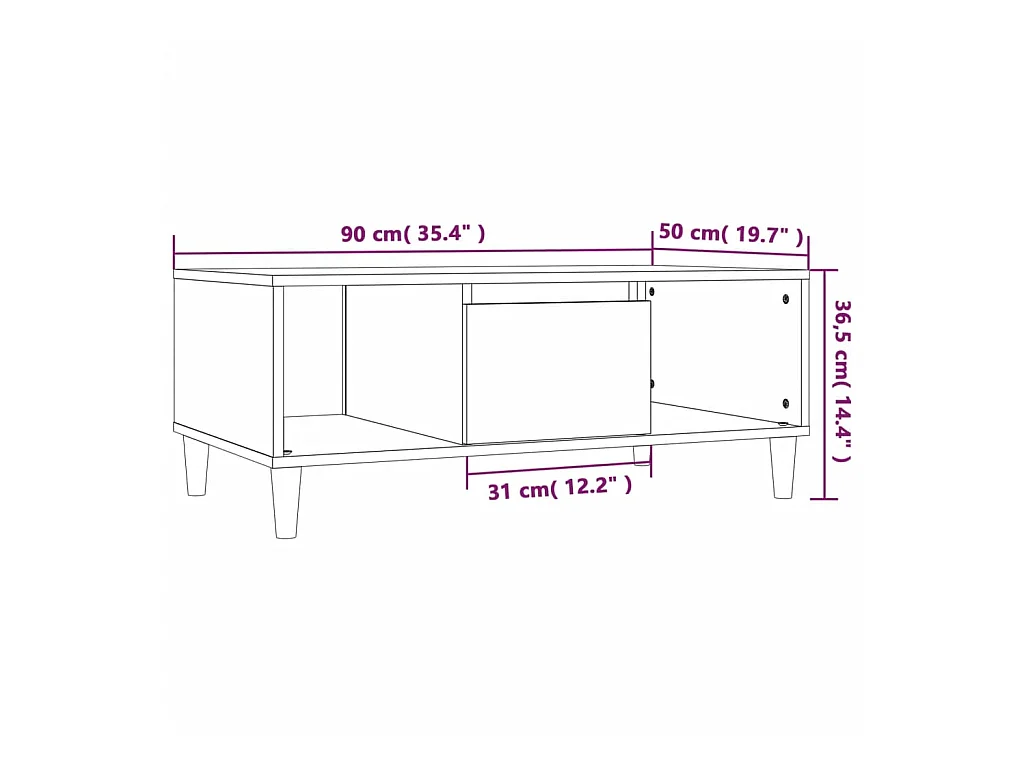 Mesa de centro dourada carvalho Sonoma 90x50x36,5 cm Madeira trabalhada