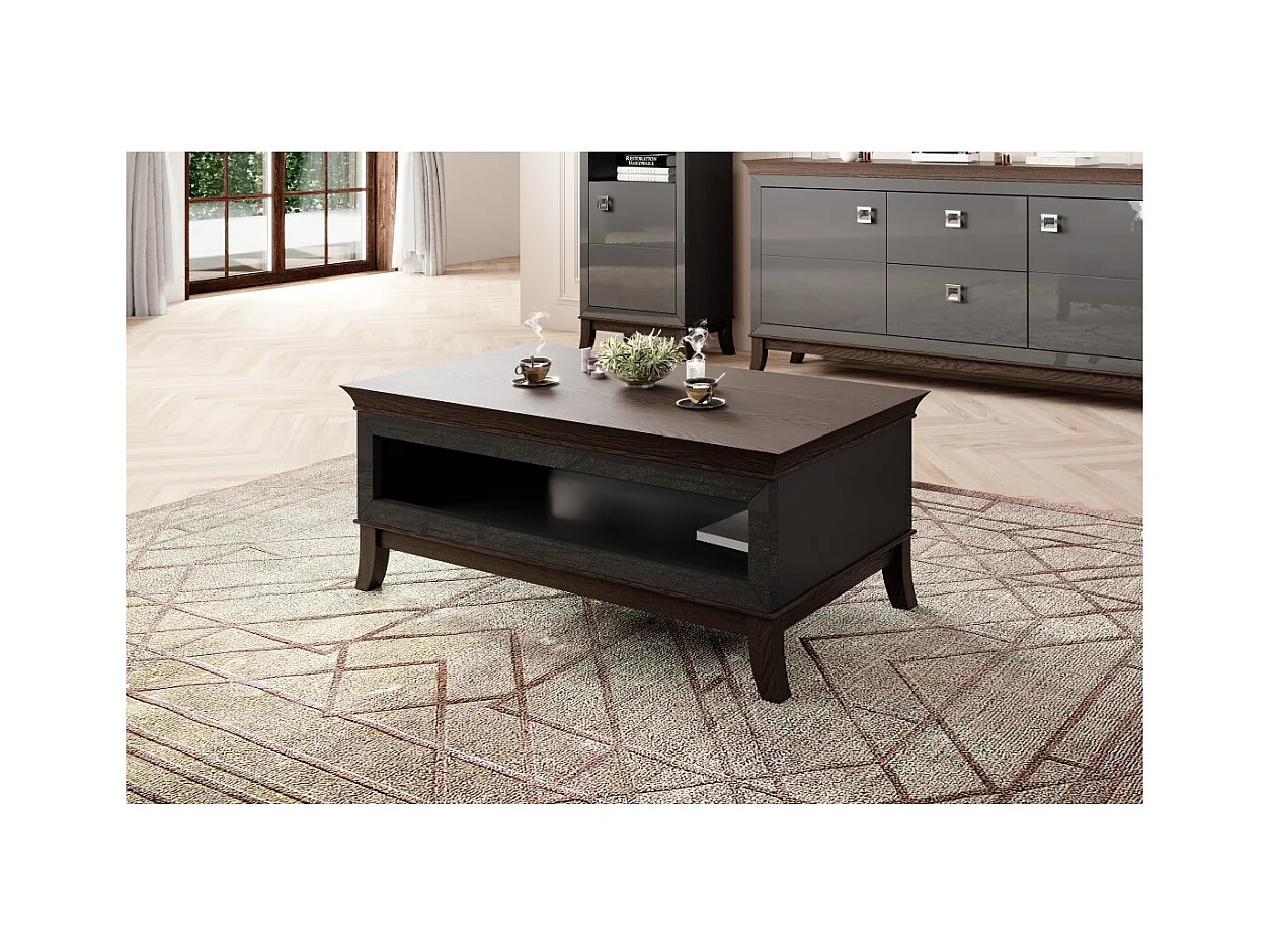 Mesa de centro elegante retangular coleção PALACE Cores cinza e carvalho escuro