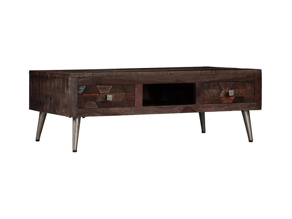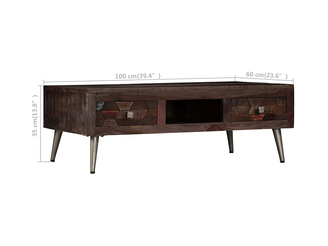 Mesa de centro em madeira recuperada maciça 100x60x35 cm