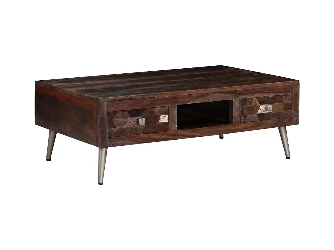 Mesa centro 2 gavetas madeira de manga sólida 100x60x40 cm