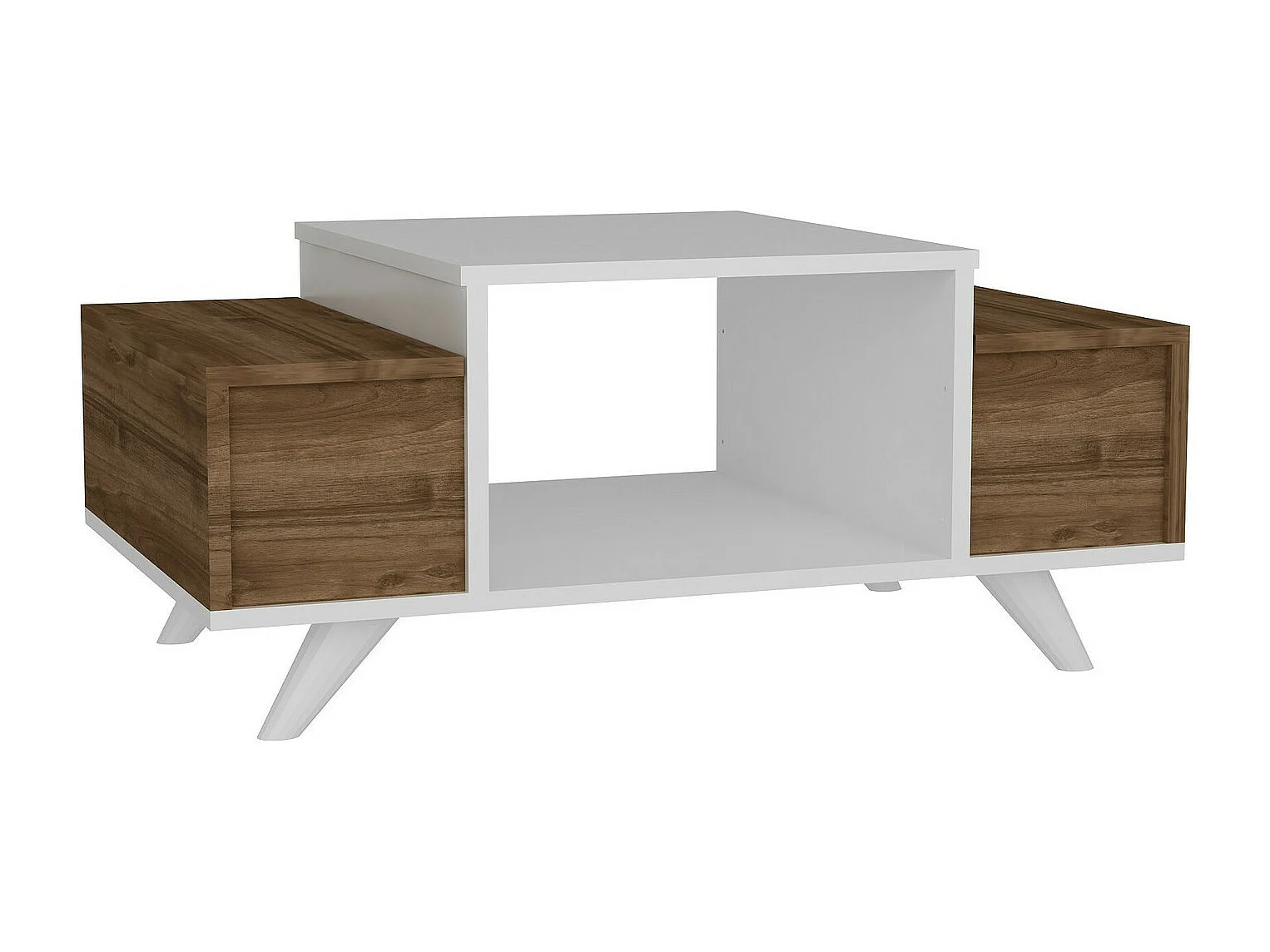 Mesa de Centro Escandinava Eriberto em Branco e Nogueira - Elegância e Funcionalidade