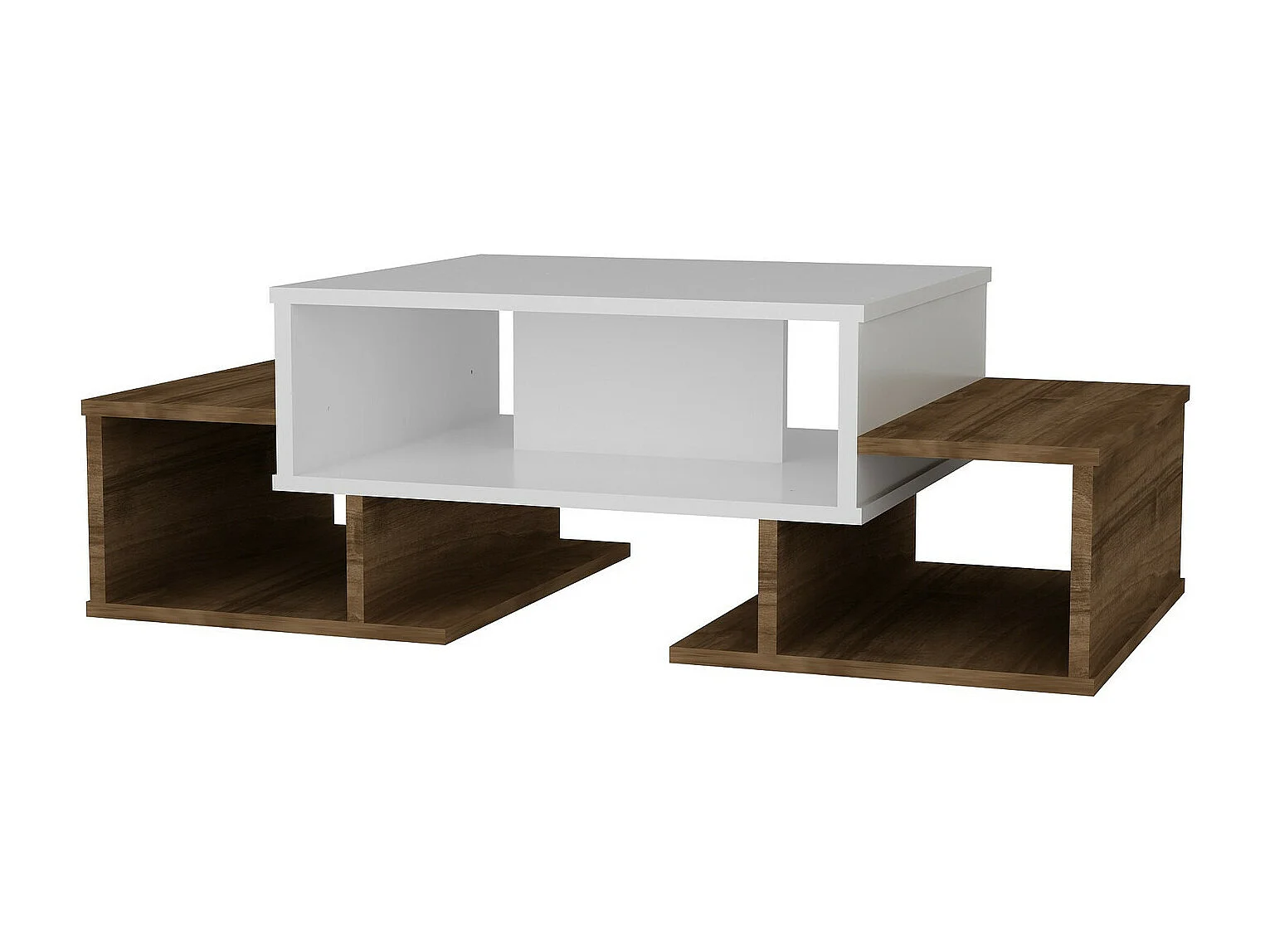 Mesa de Centro Escandinava Sarafina - Branco e Nogal para Elegância e Conforto