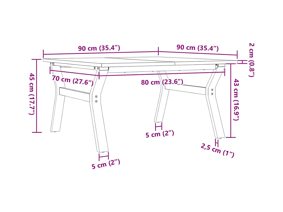 Mesa de centro estrutura em Y 90x90x45 cm pinho e ferro fundido