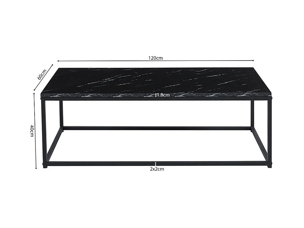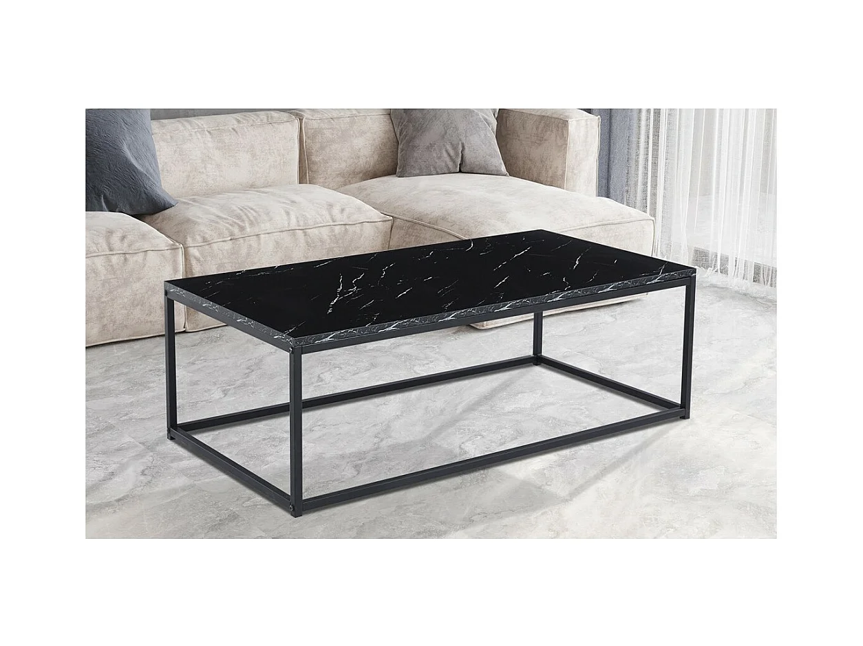Mesa de centro EWING com efeito de mármore preto, ideal para uma sala única.