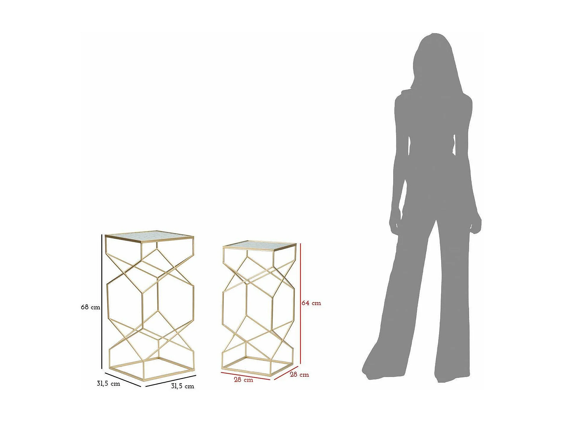 Mesa de centro George, Mesa de centro baixa, Porta-revistas para sofá, Estante de sala, Ouro, 32x32 h68 cm