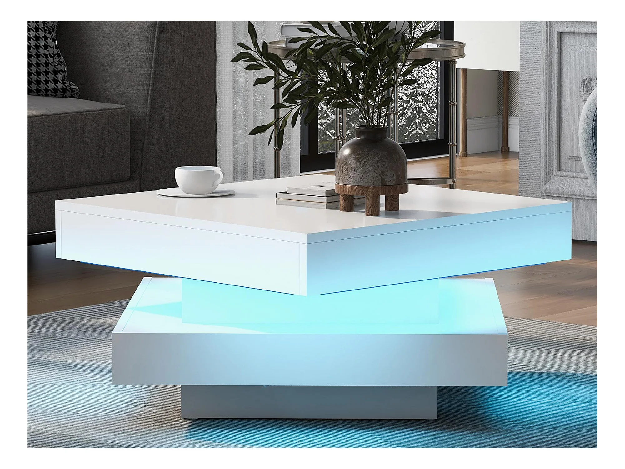 Mesa de centro giratória com LED em 16 cores - formato quadrado - Branco