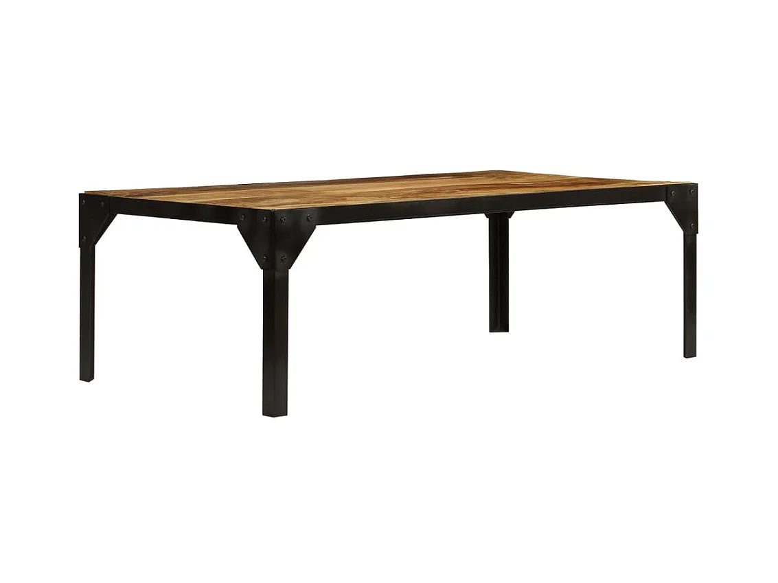 Mesa de centro madeira de mangueira maciça áspera e aço 110 cm PT669681