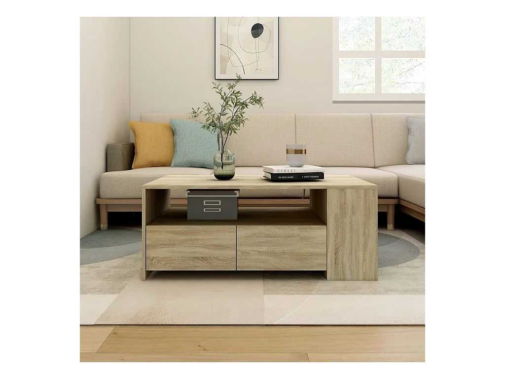 Mesa de centro | Mesa de apoio 102x55x42 cm madeira processada carvalho sonoma