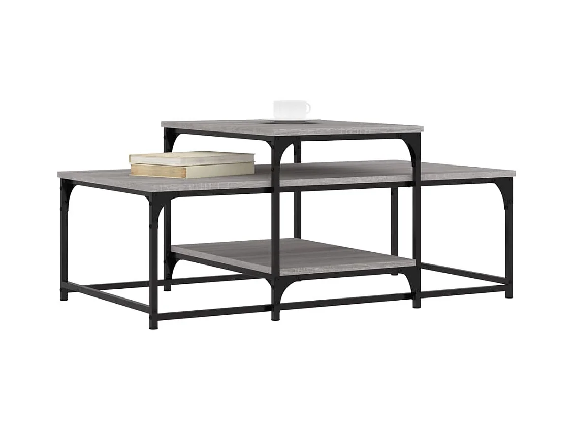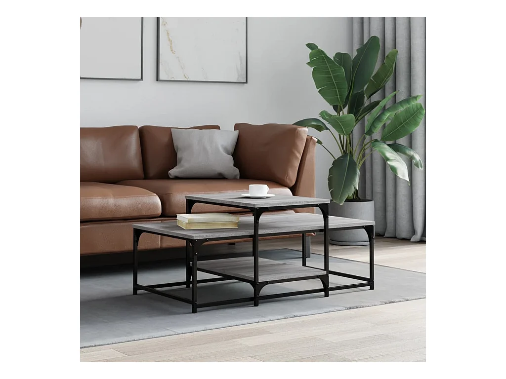 Mesa de centro | Mesa de apoio 80x45x45 cm derivados madeira/ferro cinza sonoma