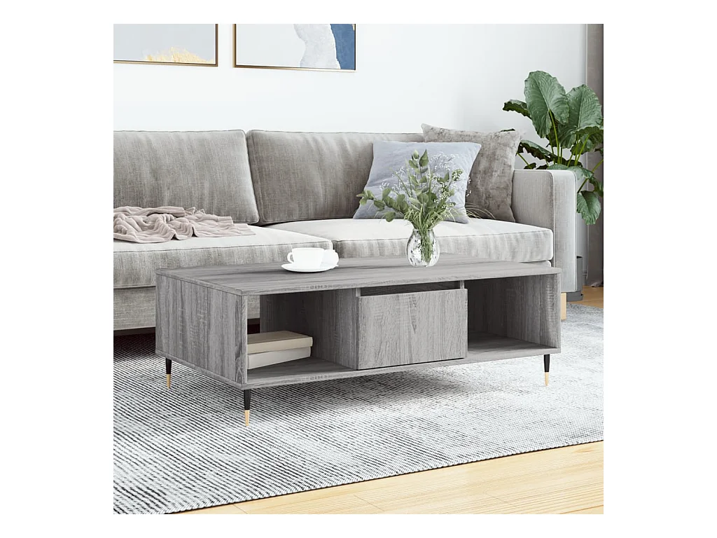 Mesa de centro | Mesa de apoio 104x60x35 cm derivados madeira cinzento sonoma