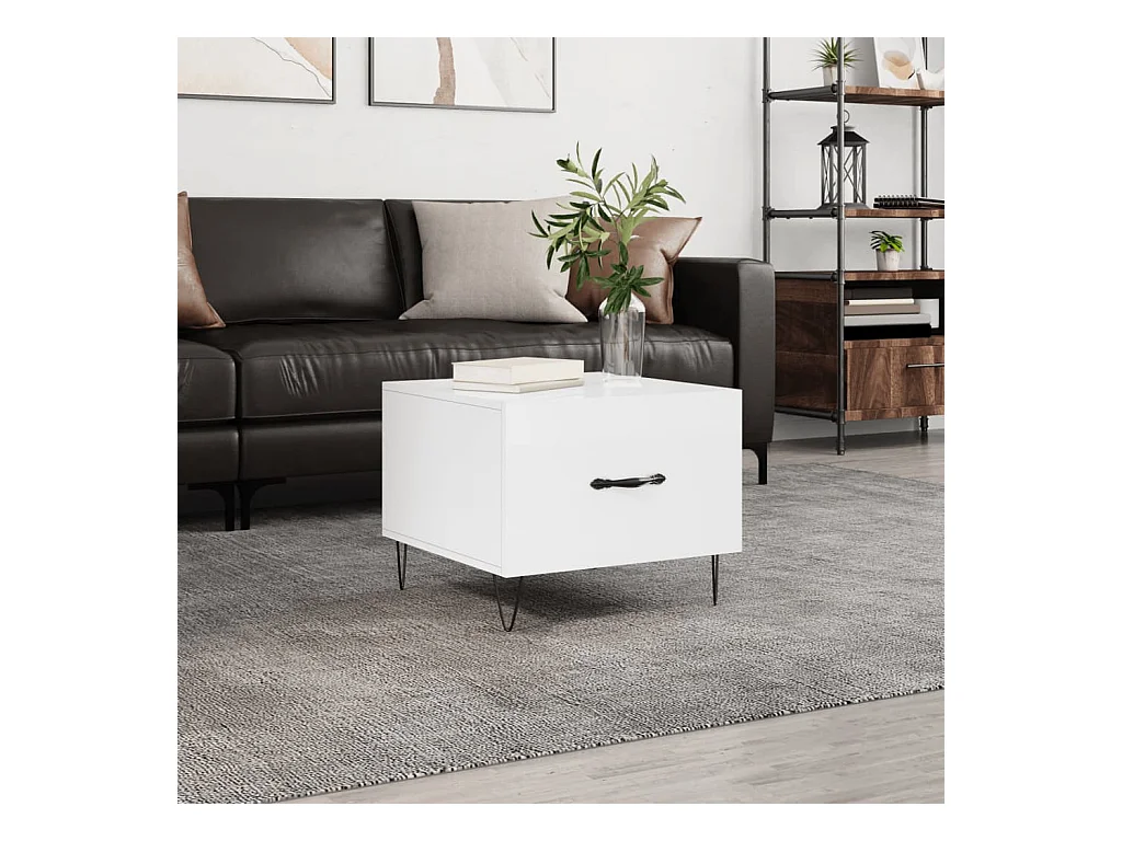 Mesa de centro | Mesa de apoio 50x50x40 cm madeira processada branco brilhante