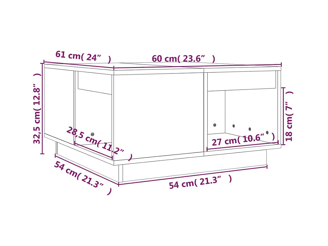 Mesa de centro 60x61x32,5 cm madeira pinho maciça castanho-mel PT839696