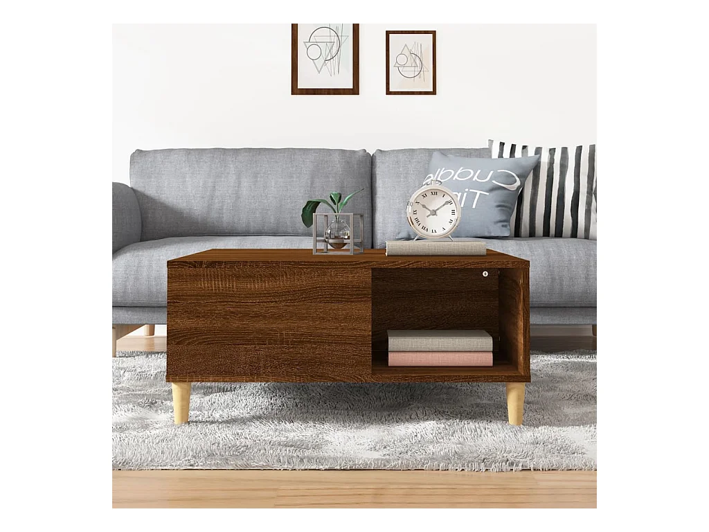 Mesa de centro | Mesa de apoio 80x80x36.5 cm derivados madeira carvalho castanho