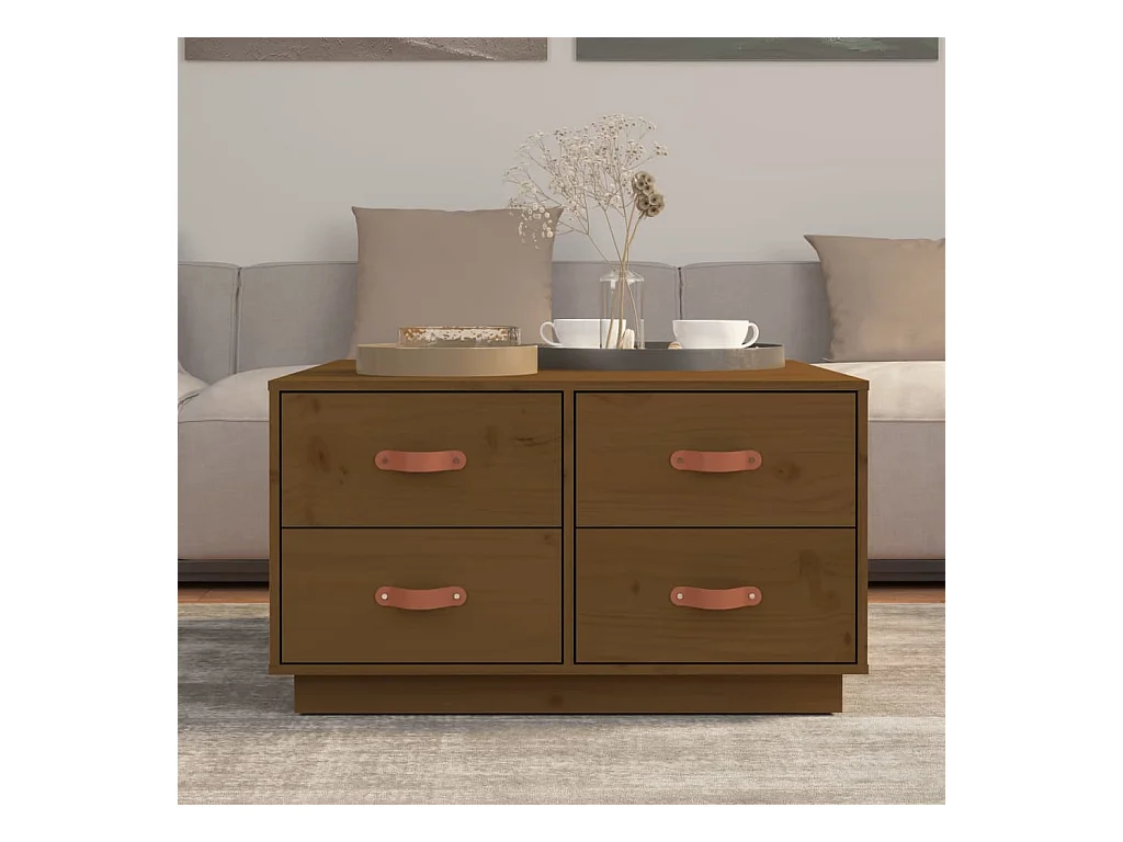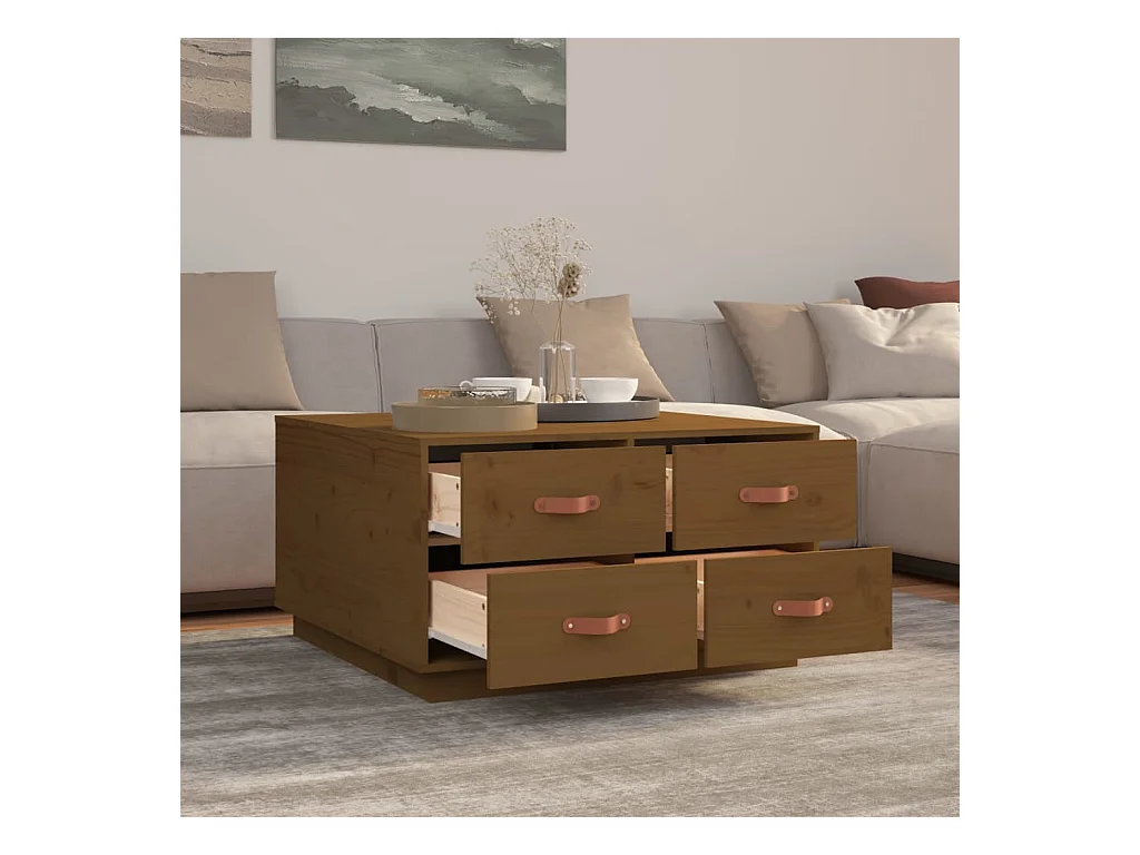 Mesa de centro 80x80x45 cm pinho maciço castanho mel PT831677