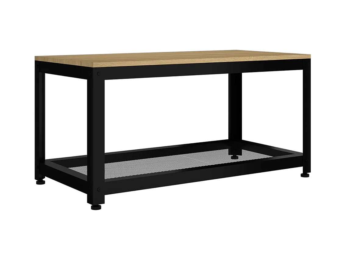 Mesa de centro | Mesa de apoio 90x45x45 cm MDF e ferro castanho-claro e preto