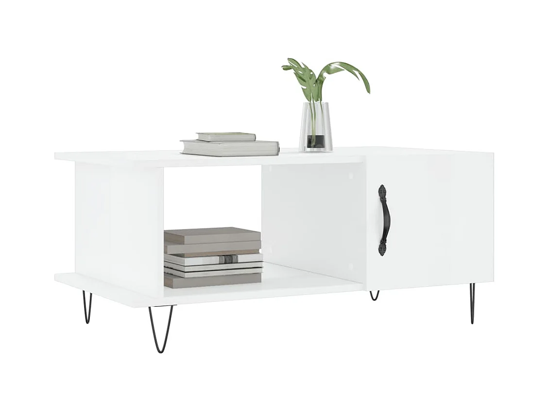 Mesa de centro | Mesa de apoio 90x50x40 cm madeira processada branco brilhante