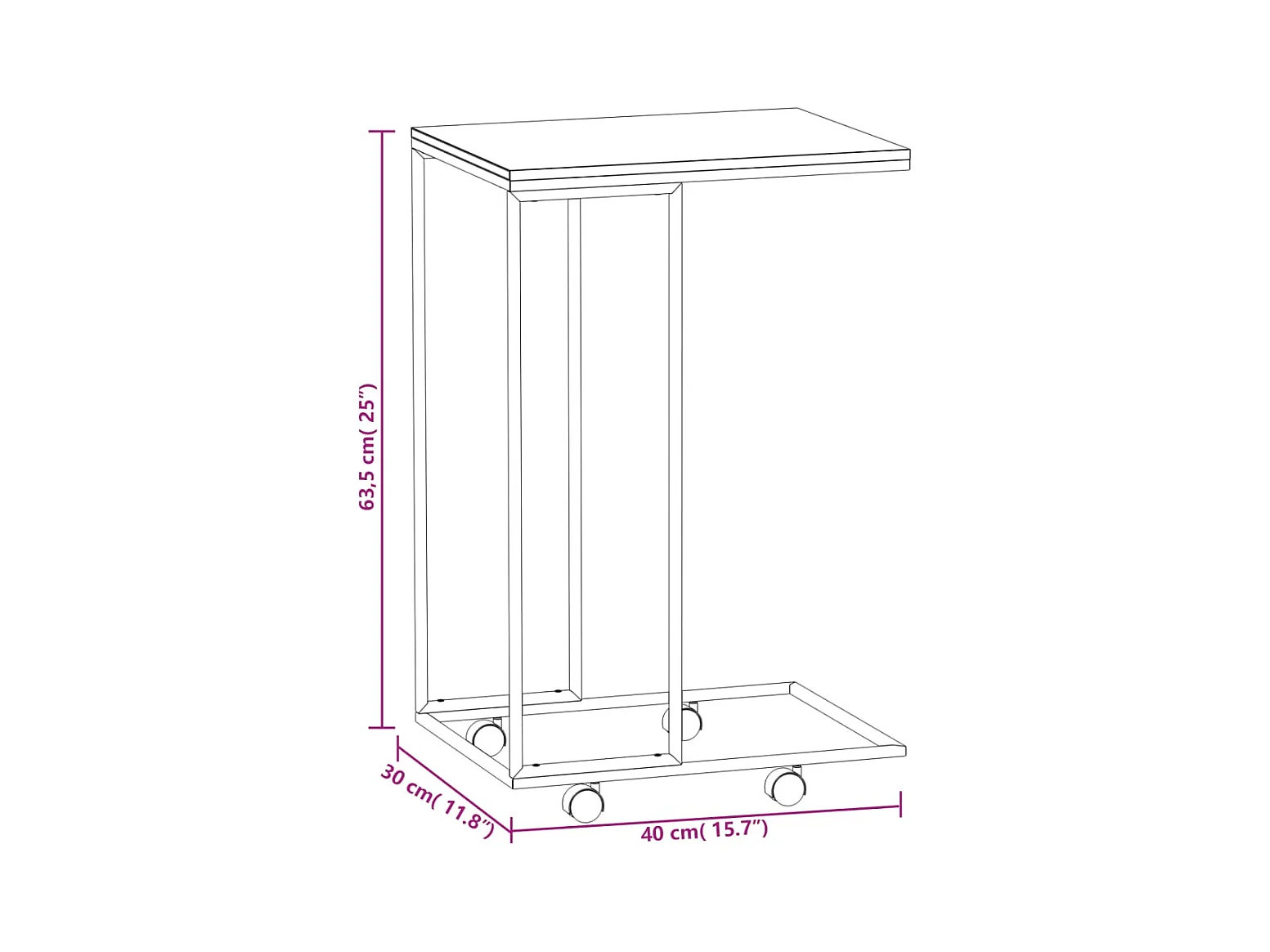 Mesa de centro | Mesa de apoio c/ rodas 55x36x63.5 cm derivados de madeira preto