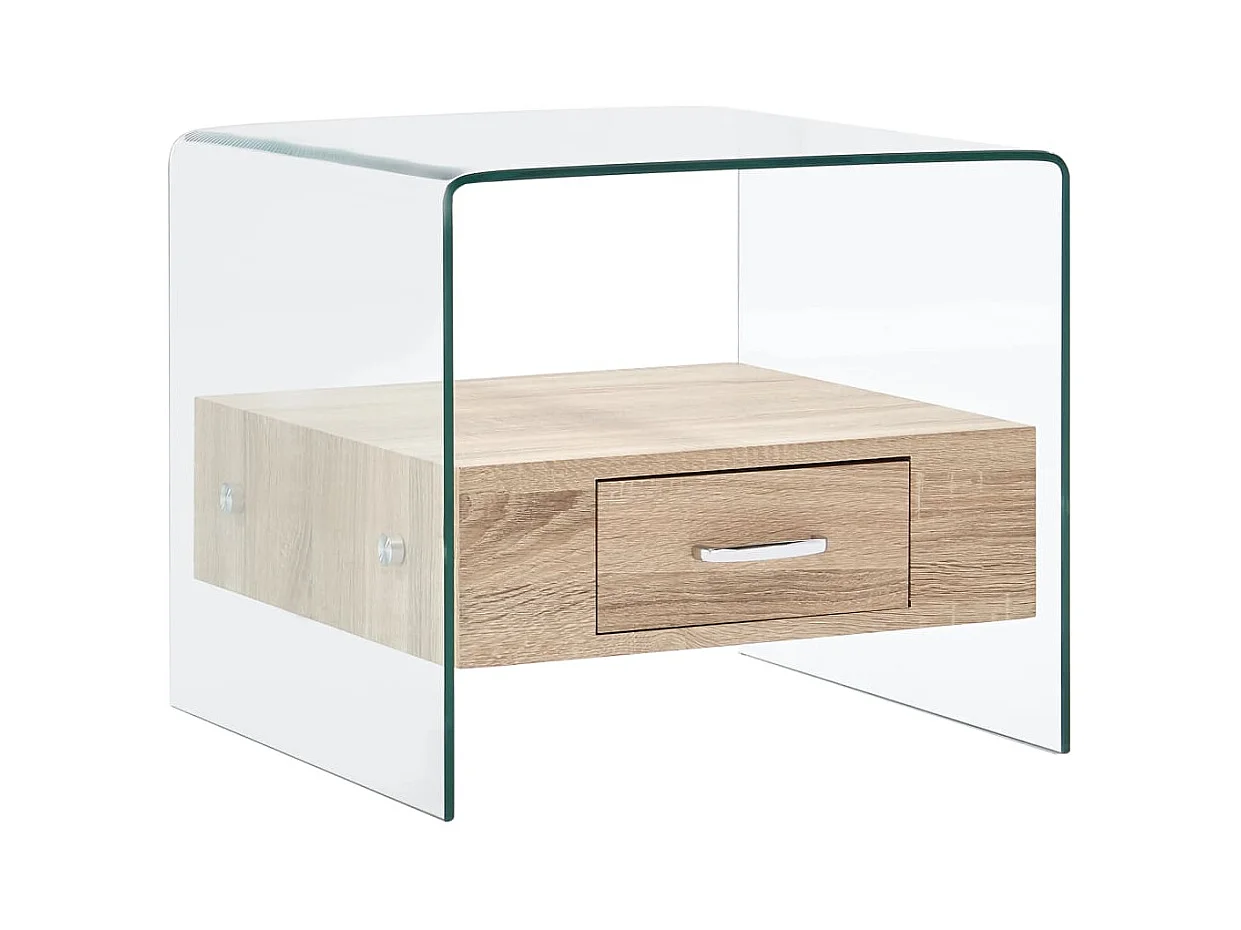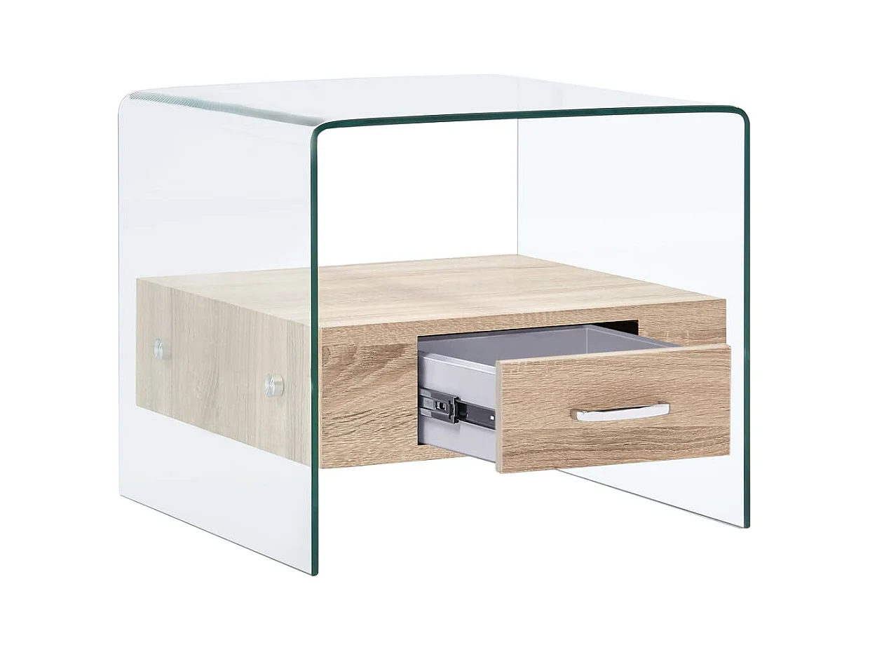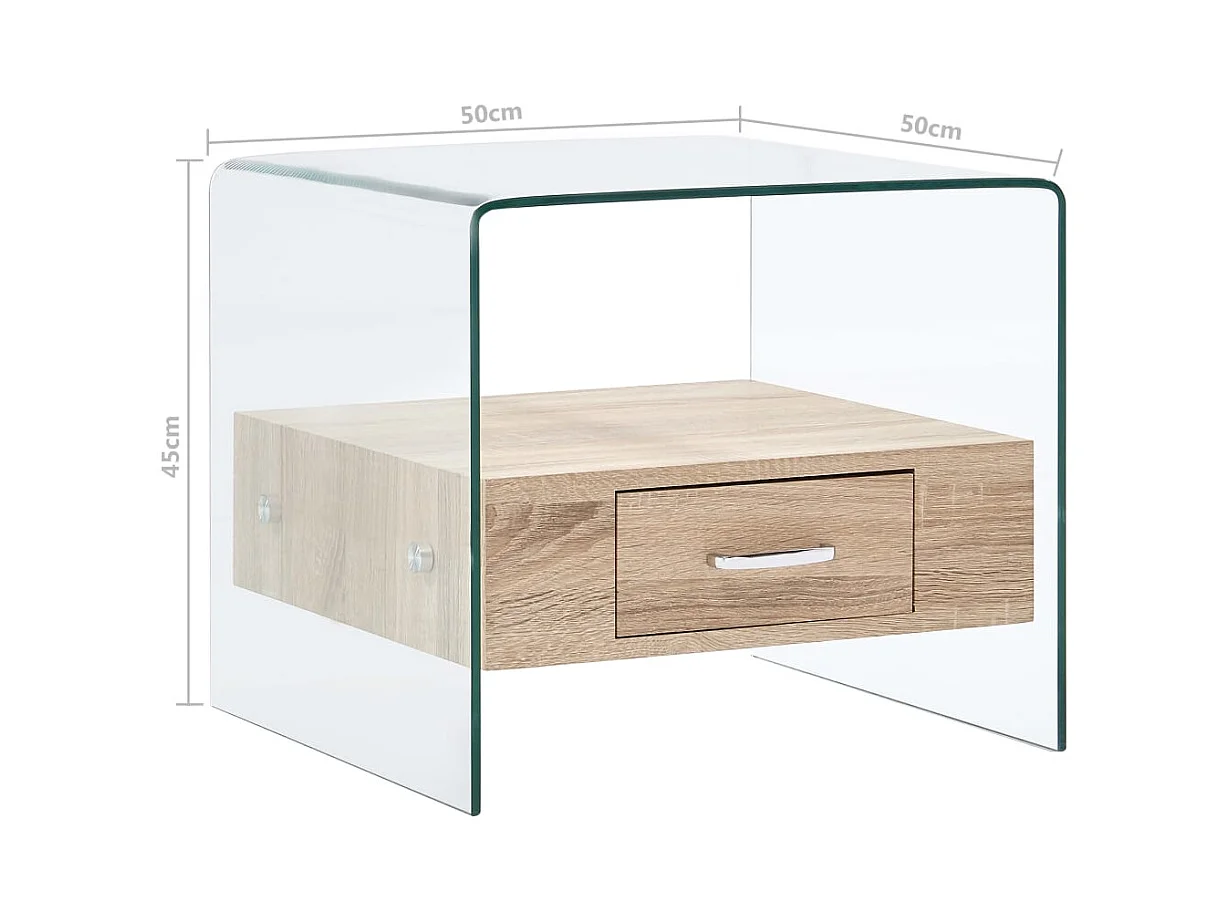 Mesa de centro | Mesa de apoio com gaveta 50x50x45 cm vidro temperado