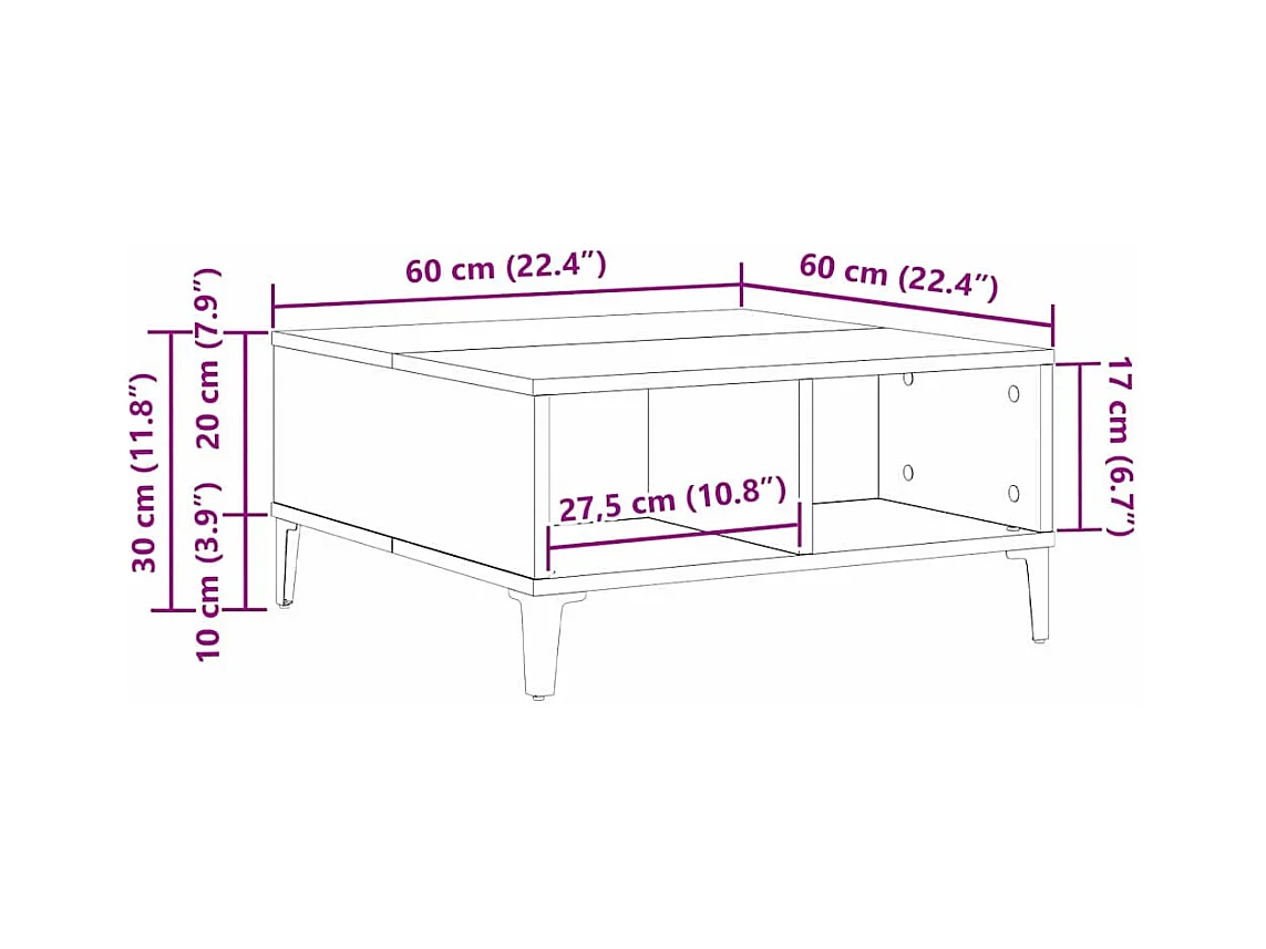 Mesa de centro | Mesa de apoio | Mesa de café 60x60x30 cm derivados madeira carvalho artisiano