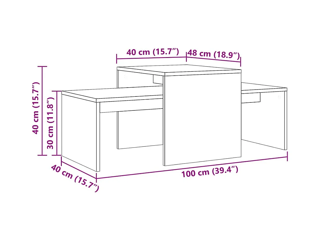 Mesa de centro | Mesa de apoio | Mesa de café 100x48x40 cm deriv. madeira carvalho artisiano