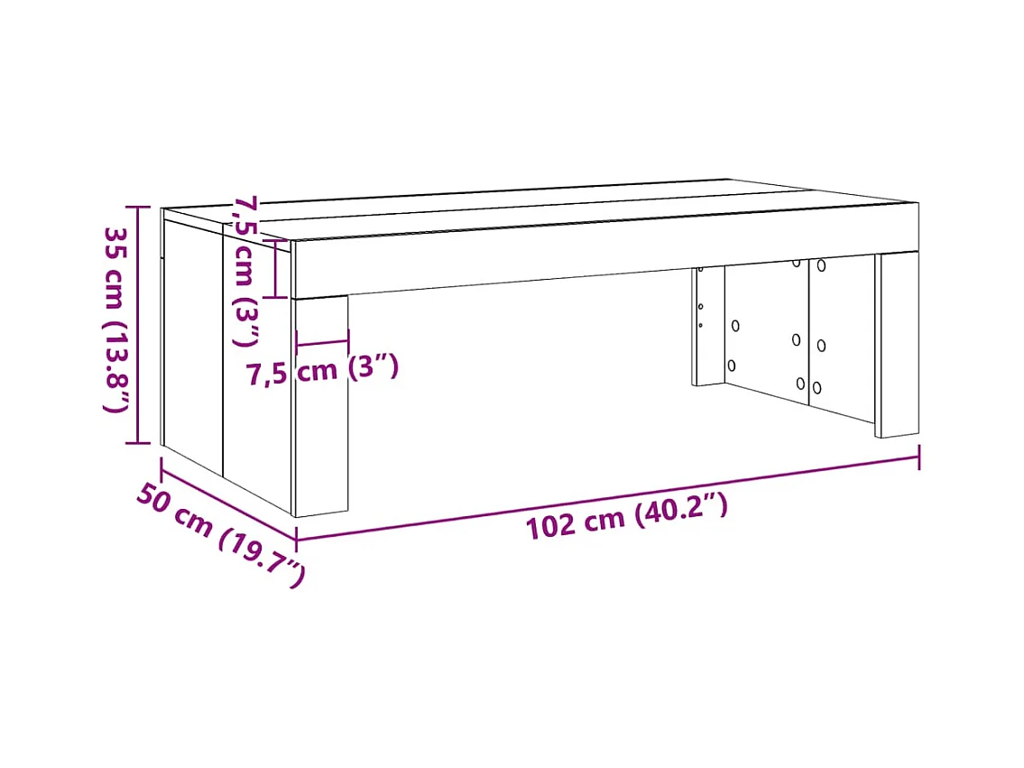 Mesa de centro | Mesa de apoio 102x50x35cm derivados de madeira carvalho sonoma