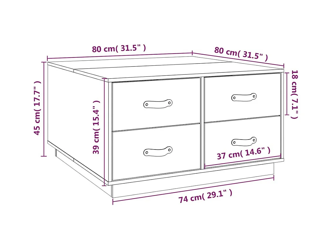 Mesa de centro 80x80x45 cm madeira de pinho maciça PT399648