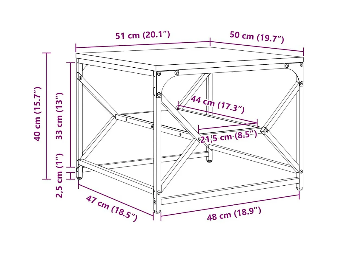 Mesa de centro | Mesa de apoio | Mesa de café Carvalho sonoma 51x50x40 cm