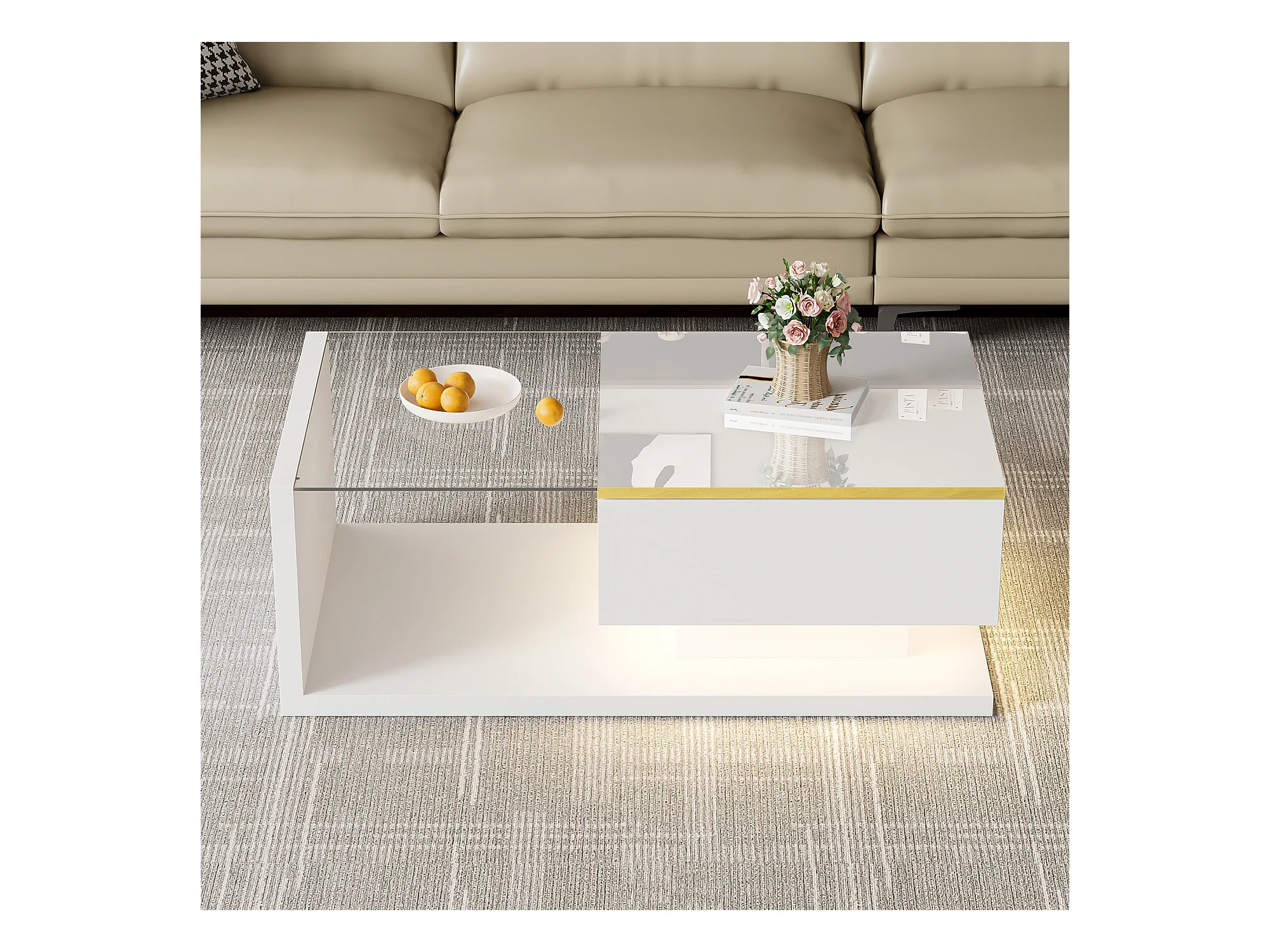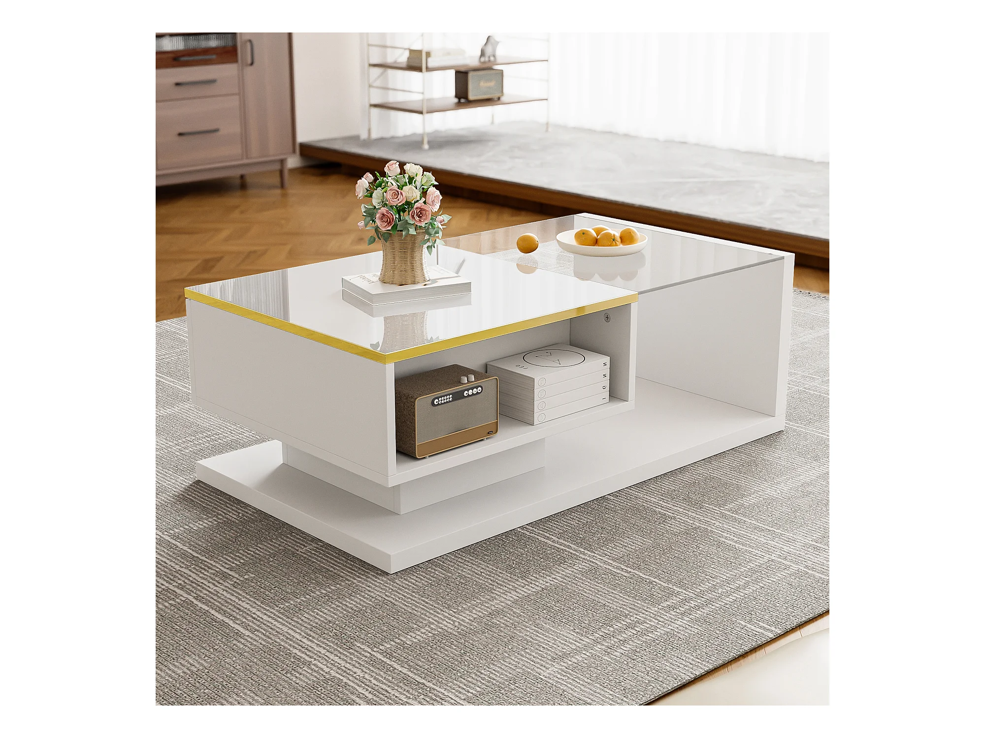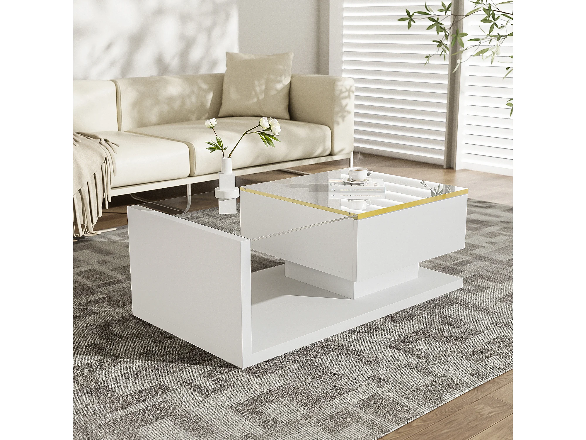 Mesa de centro moderna em vidro com iluminação LED - painéis de partículas - branco