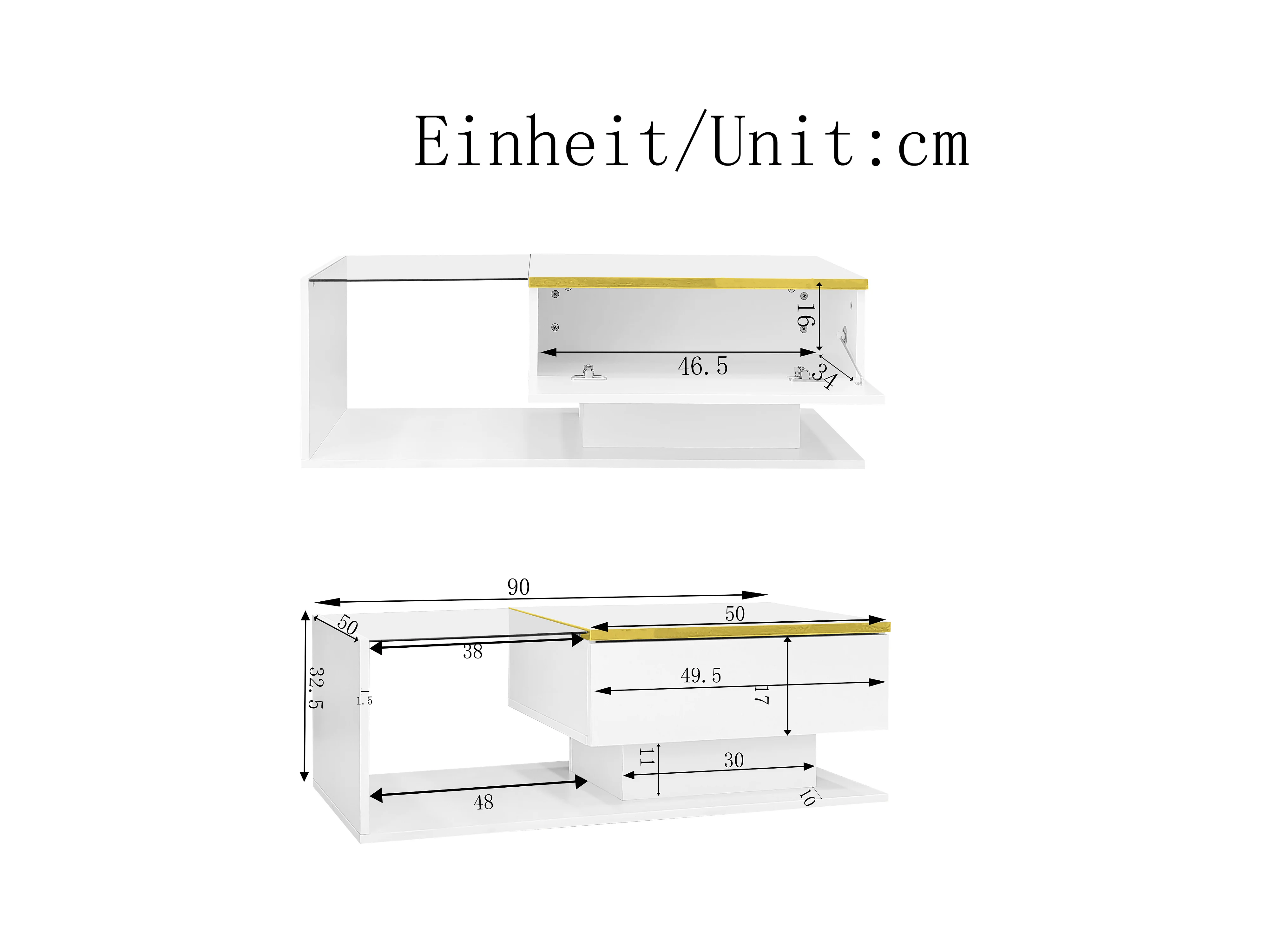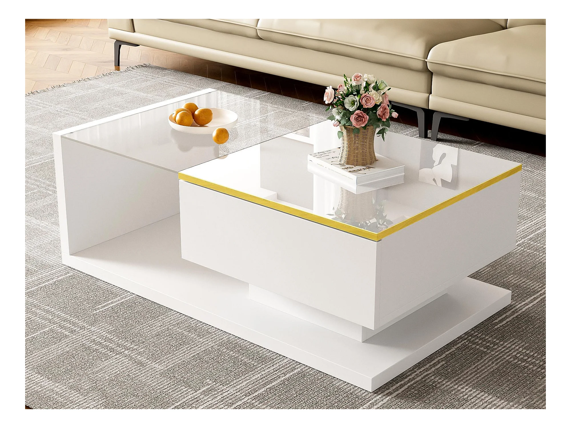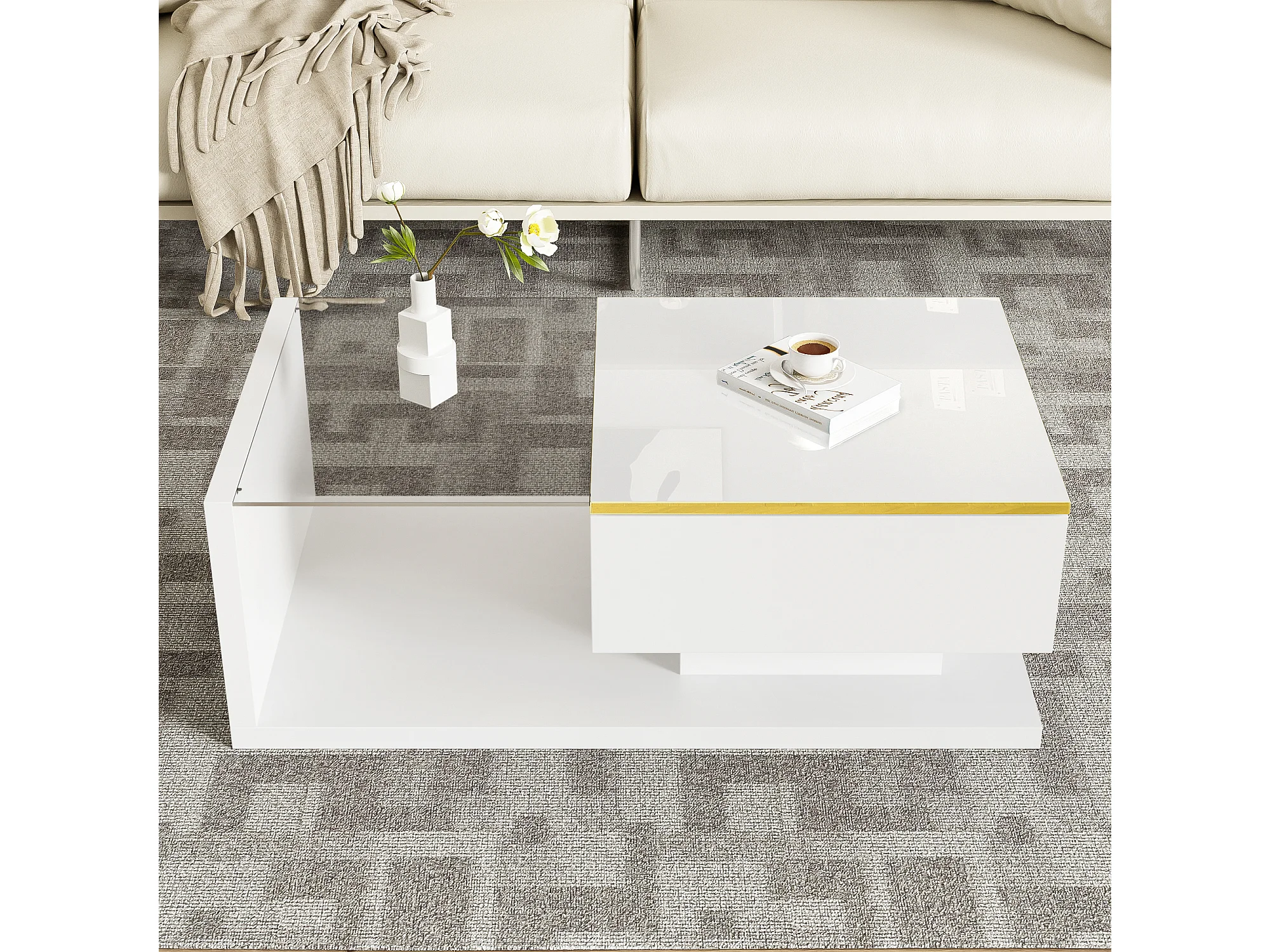 Mesa de centro moderna em vidro com iluminação LED - painéis de partículas - branco