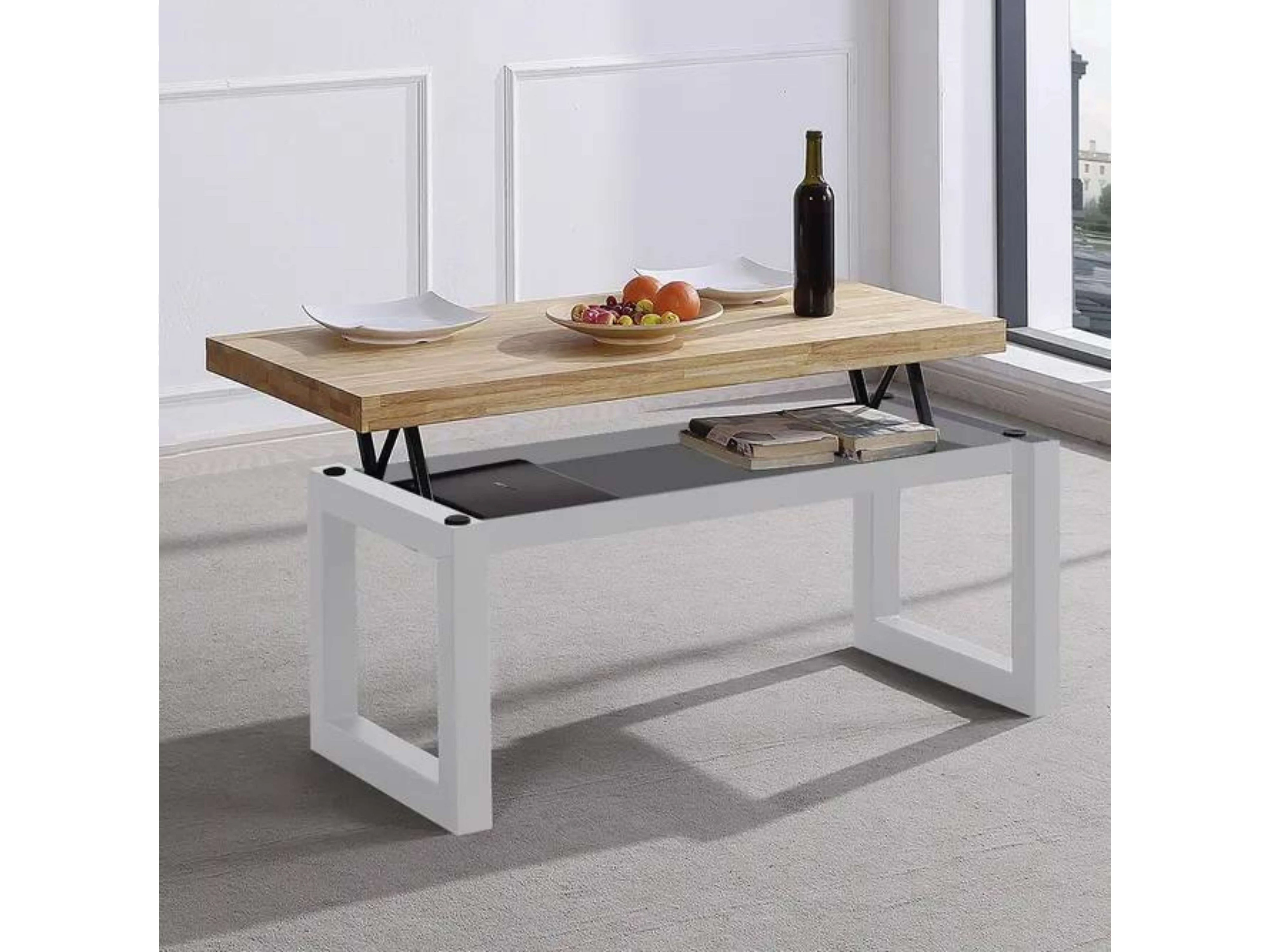 Mesa de centro nórdica elevável em carvalho nórdico branco 120x48x60cm