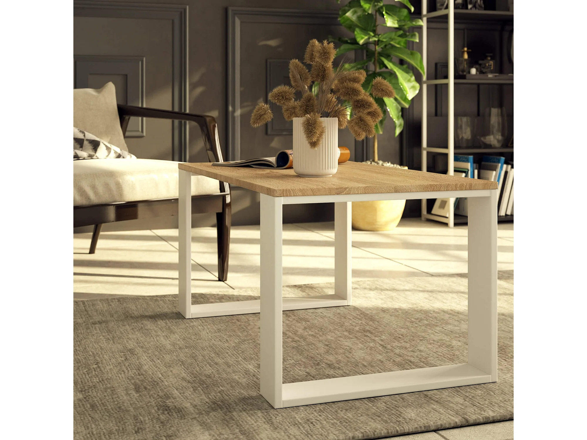 Mesa de centro fixa Brooklyn, carvalho canadense/branco Artik, 40x50x50 cm