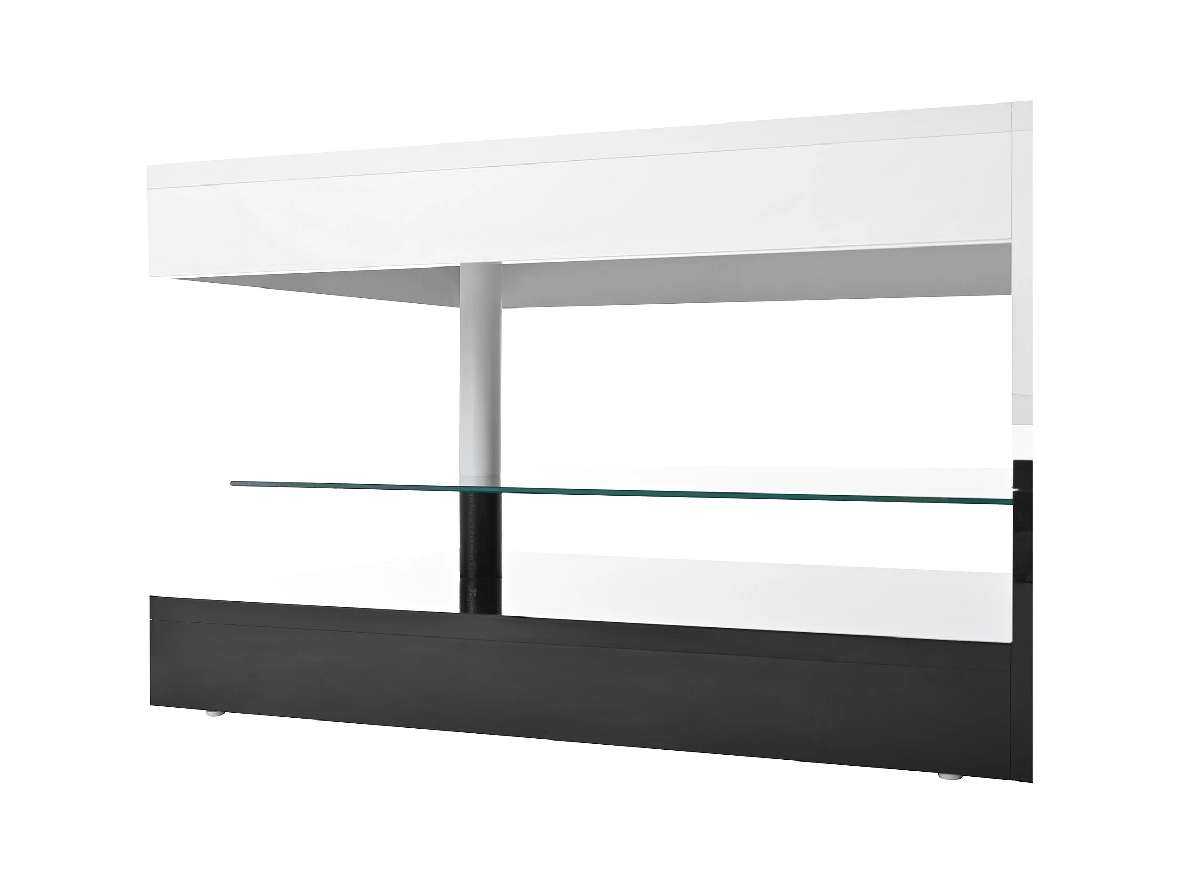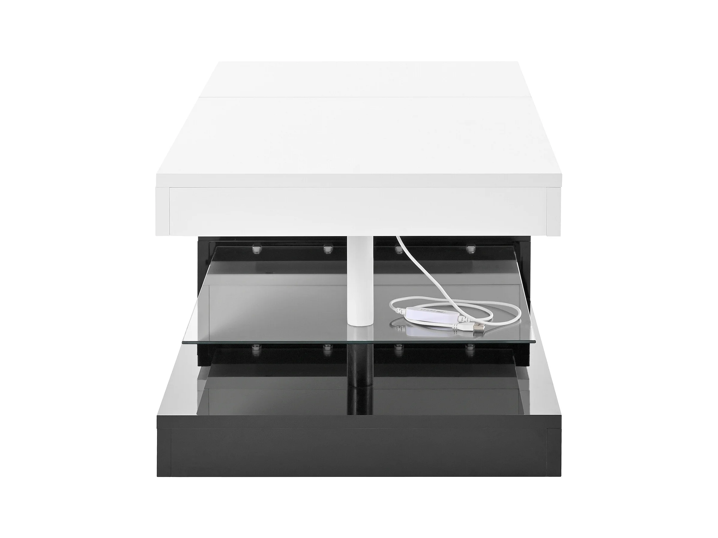 Mesa de centro preta e branca - Mesa de centro moderna com iluminação LED e prateleiras em vidro - Acabamento brilhante