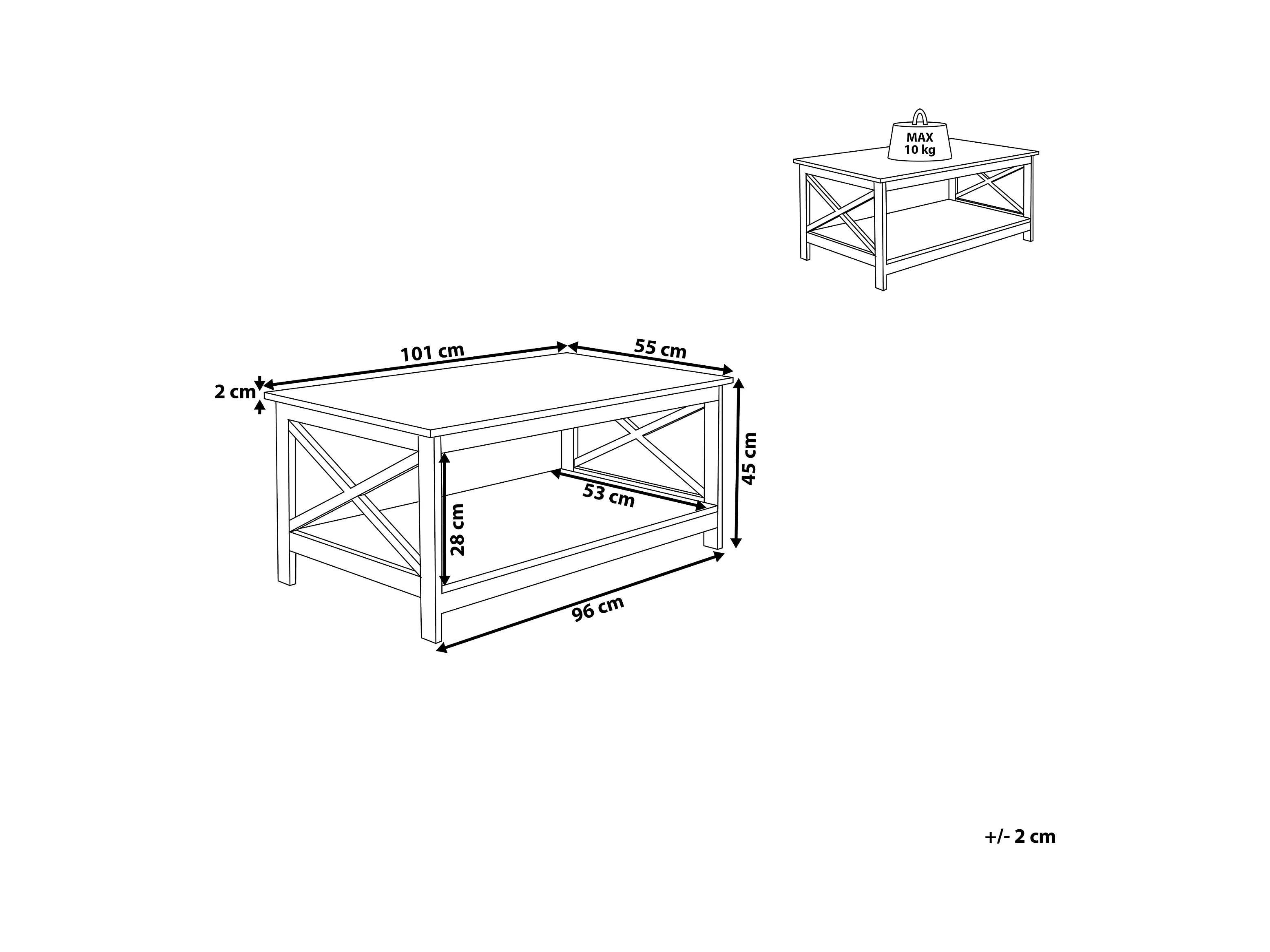Mesa de centro moderna retangular simples com 2 prateleiras, 100 cm, carvalho wotan, branco mate
