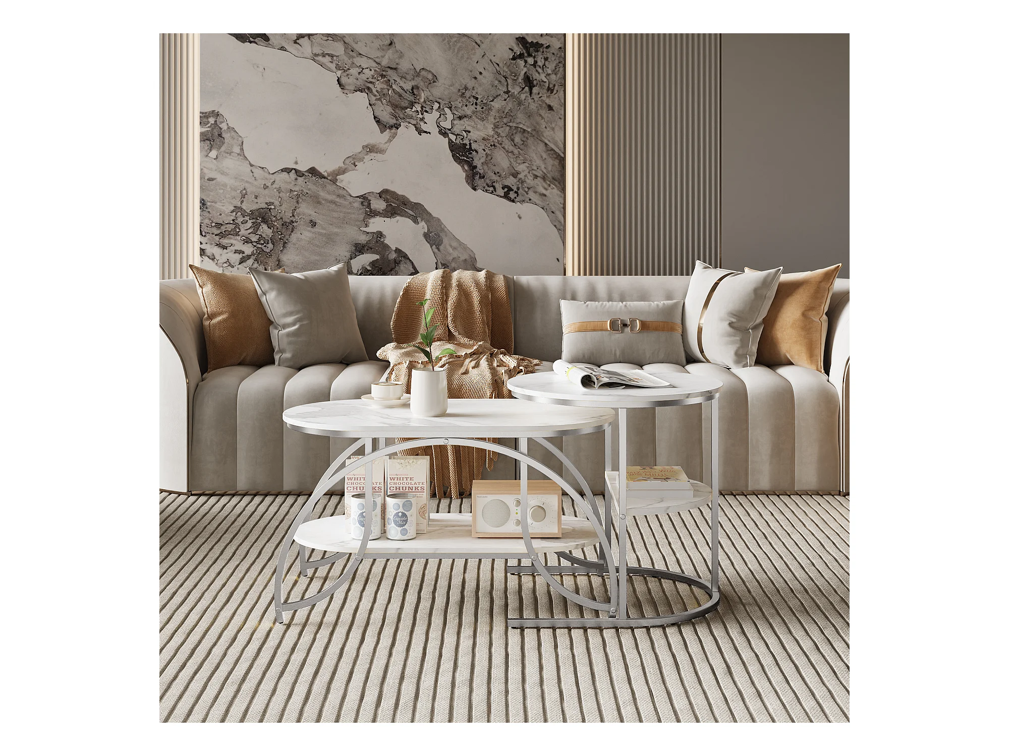 Mesa de centro quadrada de mármore branco com estrutura de metal prateado - design moderno, estável e versátil