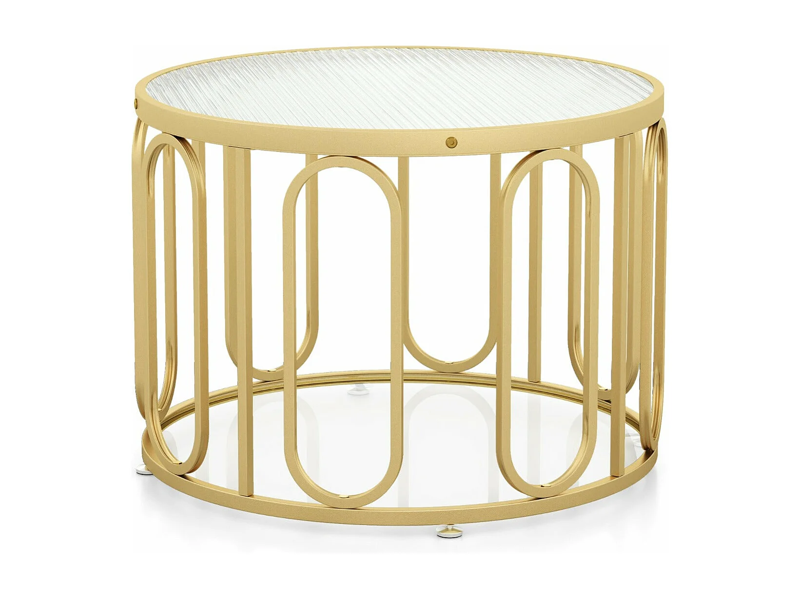Mesa de centro redonda de 24 ", mesa lateral de 2 camadas, vidro temperado, suporte giratório oval, sofá, mesa central dourada 20_0009341