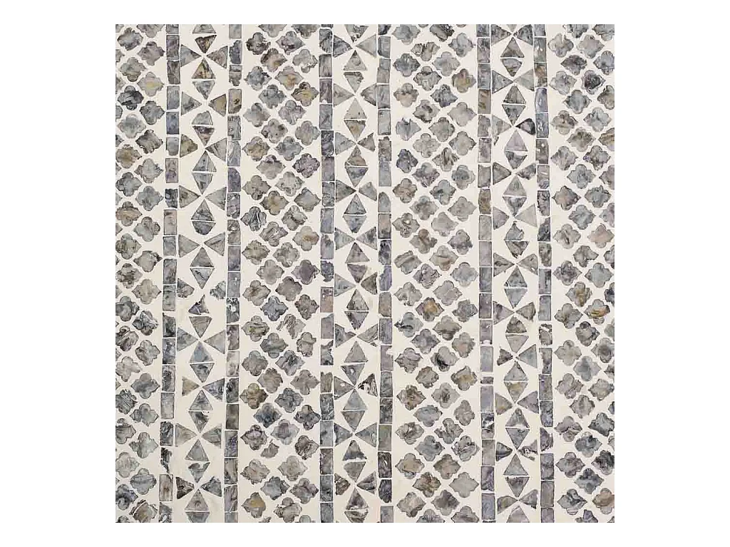 Mesa de centro retangular de madeira com acabamento em capiz cinza 124x60x49