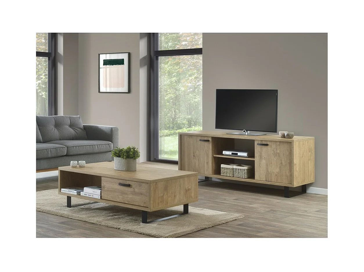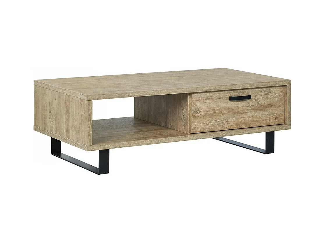 Mesa de centro robusta coleção NEWTON Cor carvalho claro. Pés em metal preto.