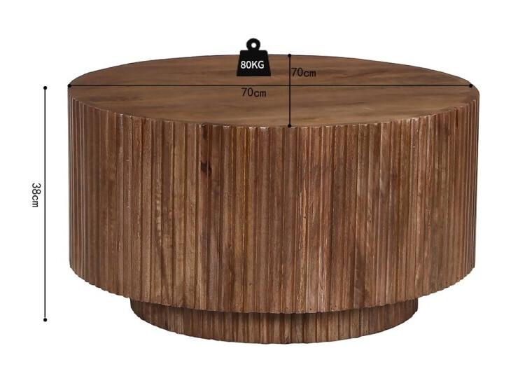 Mesa de centro TALVORA – Madeira de mangueira maciça – Mesa de centro redonda Ø70 cm – Design natural e autêntico