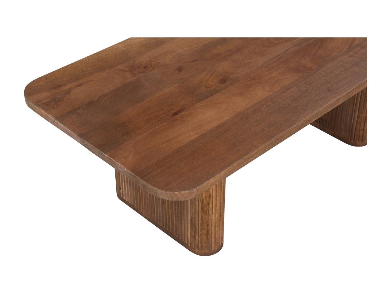 A mesa de centro TALVORA no formato retangular é projetada para realçar ambientes naturais e contemporâneos. Feita em madeira de mangueira maciça, ela encanta pelo seu aspecto bruto, seus veios únicos e sua tonalidade acolhedora.