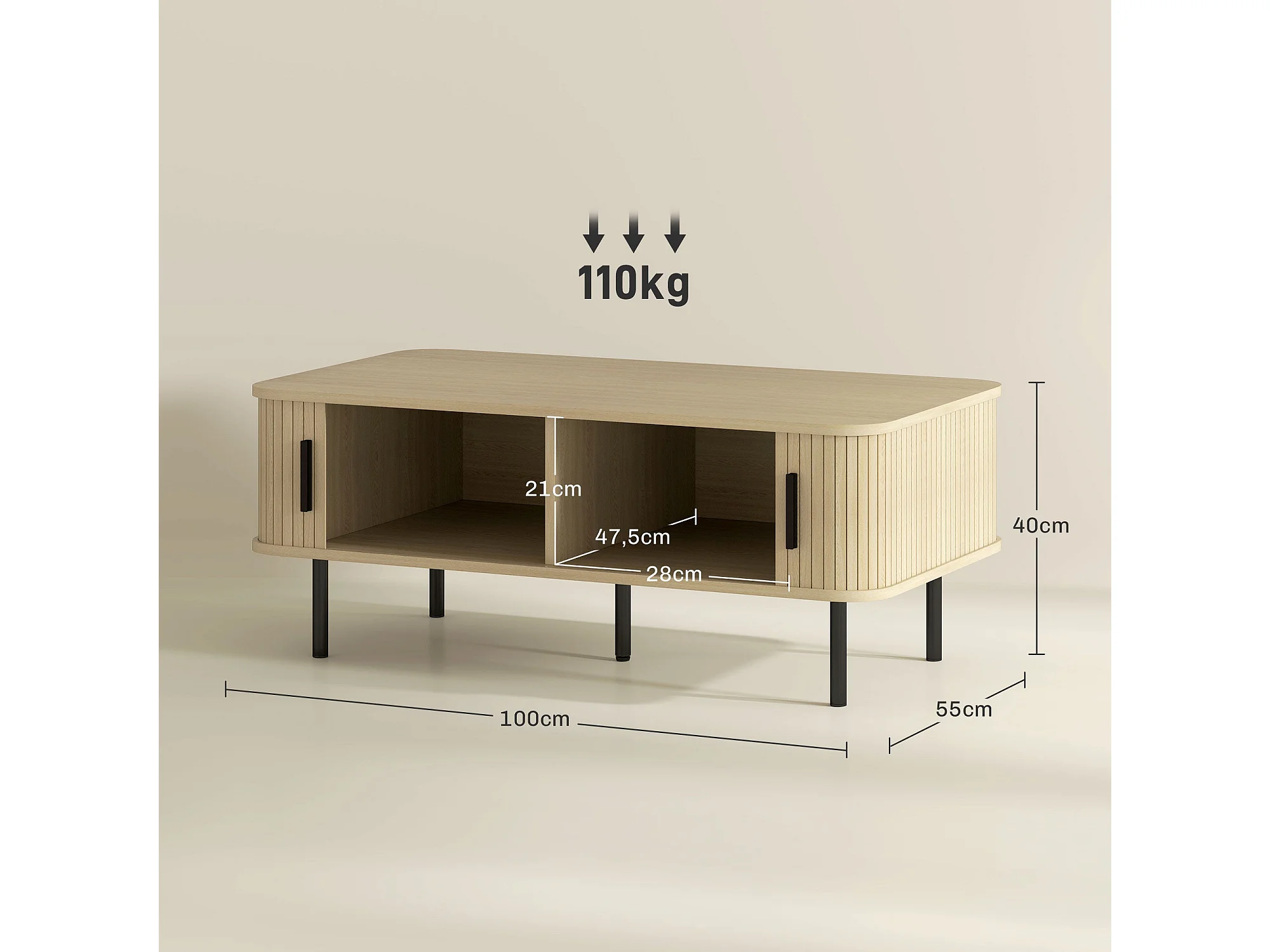 Mesa de Centro Uppsala em Carvalho com 2 Compartimentos e Portas de Correr para Sala de Estar e Quarto
