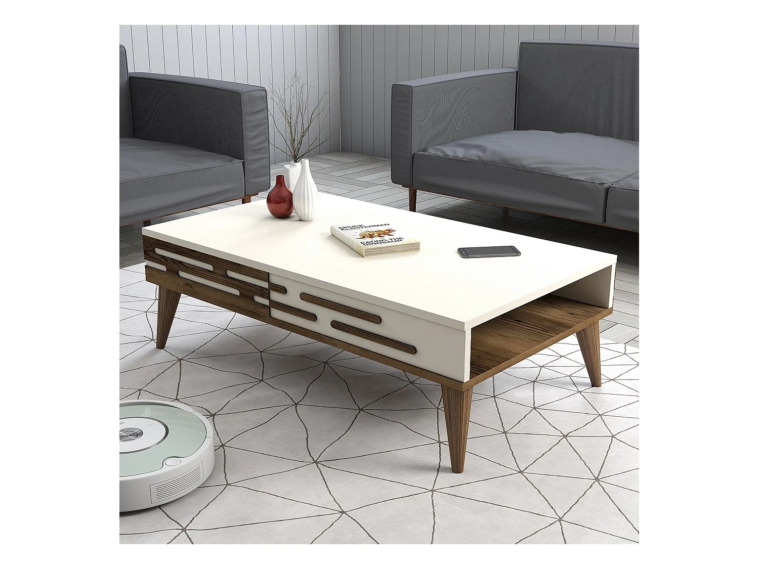 Mesa de Centro Valensiya em Noz e Creme: Elegância e Funcionalidade